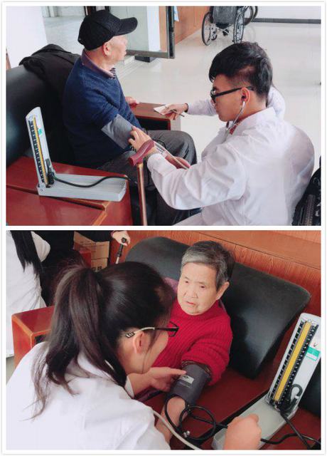 社员们为老人们测量血压,对每位老人的检查结果进行了细致的记录,详细了解老人的生活、身体状况。同时,与老人亲密地沟通,并对老人关心的问题进行耐心地解答,提醒养老院的每位老人在以后的生活中,要对自己的饮食情况及日常活动加以重视。