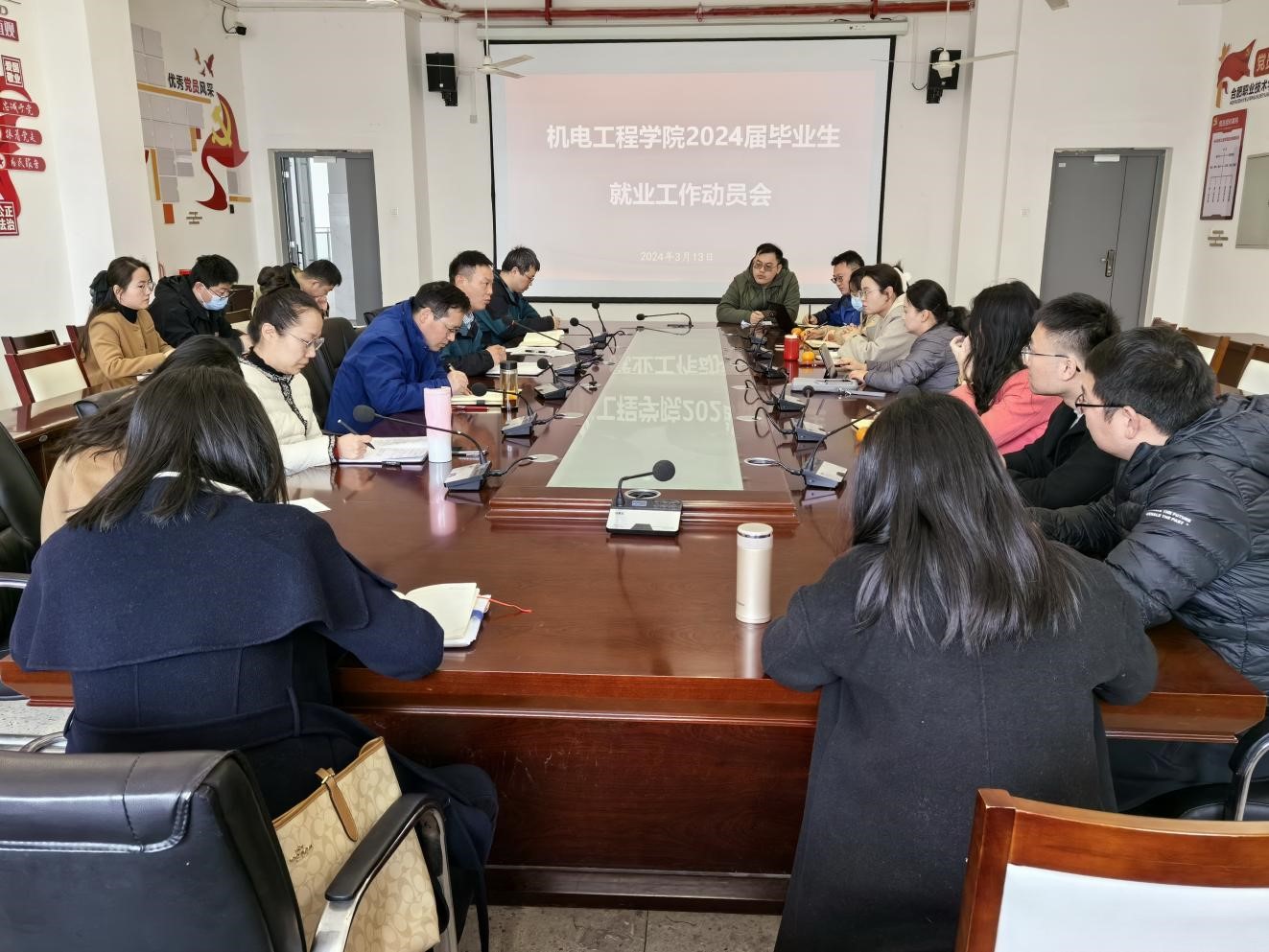 3月13日下午,机电工程学院在二楼会议室召开了2024届毕业生就业工作推进会,机电工程学院党政负责人、2024届全体辅导员、学管人员参加。会议由学院党总支副书记(主持工作)丁迎春主持。