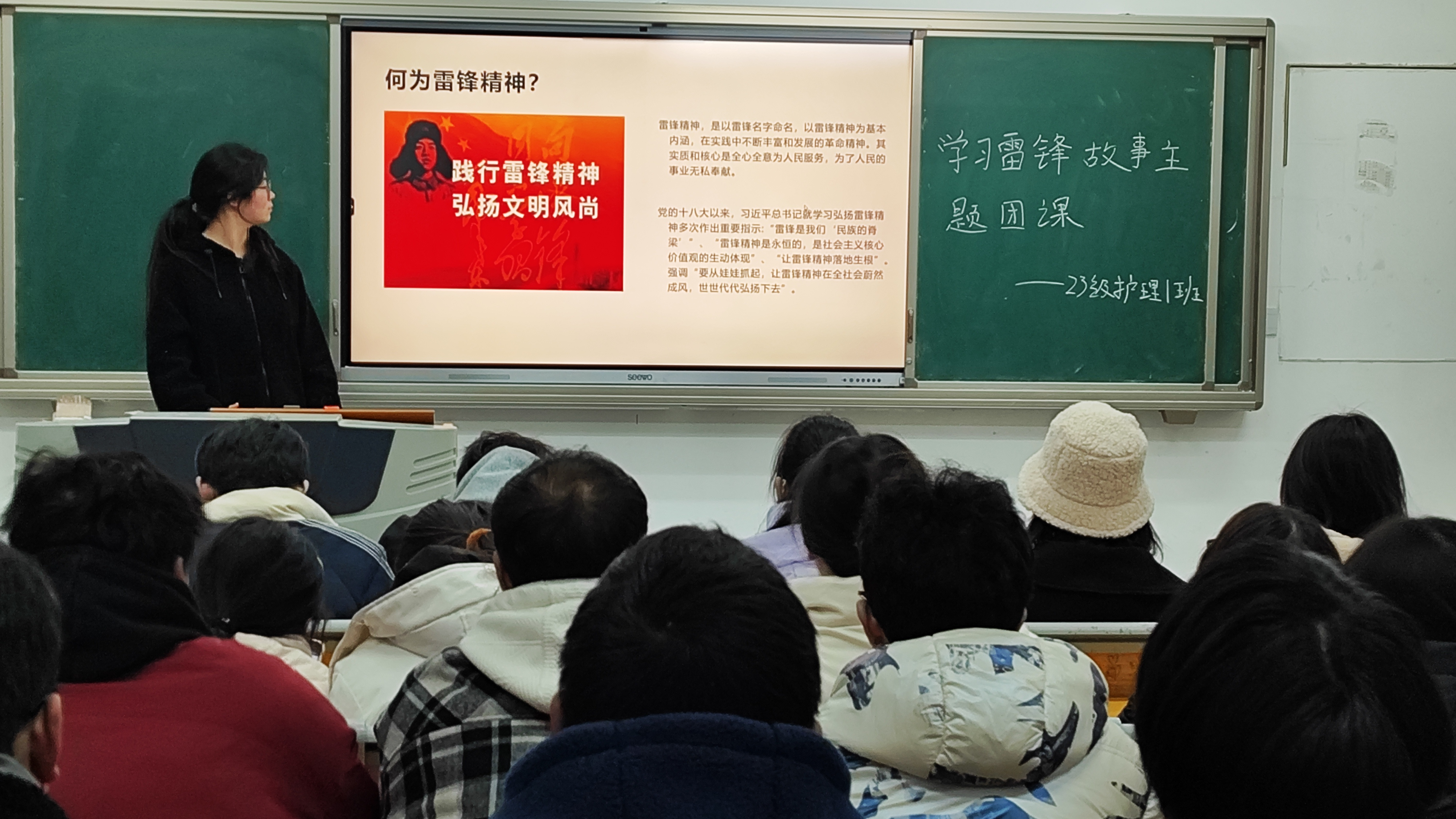 奉献正当时,团课我来讲。各班级团支部以习近平新时代中国特色社会主义思想为指导,以学习雷锋精神为主线,围绕党史、新中国史、改革开放史、社会主义发展史开展内容丰富的主题团课教育活动。团员青年们在聆听雷锋故事、探寻雷锋精神的同时,更加坚定了理想信念、增强了使命感和责任感,为今后的工作和学习注入了强大的精神动力。