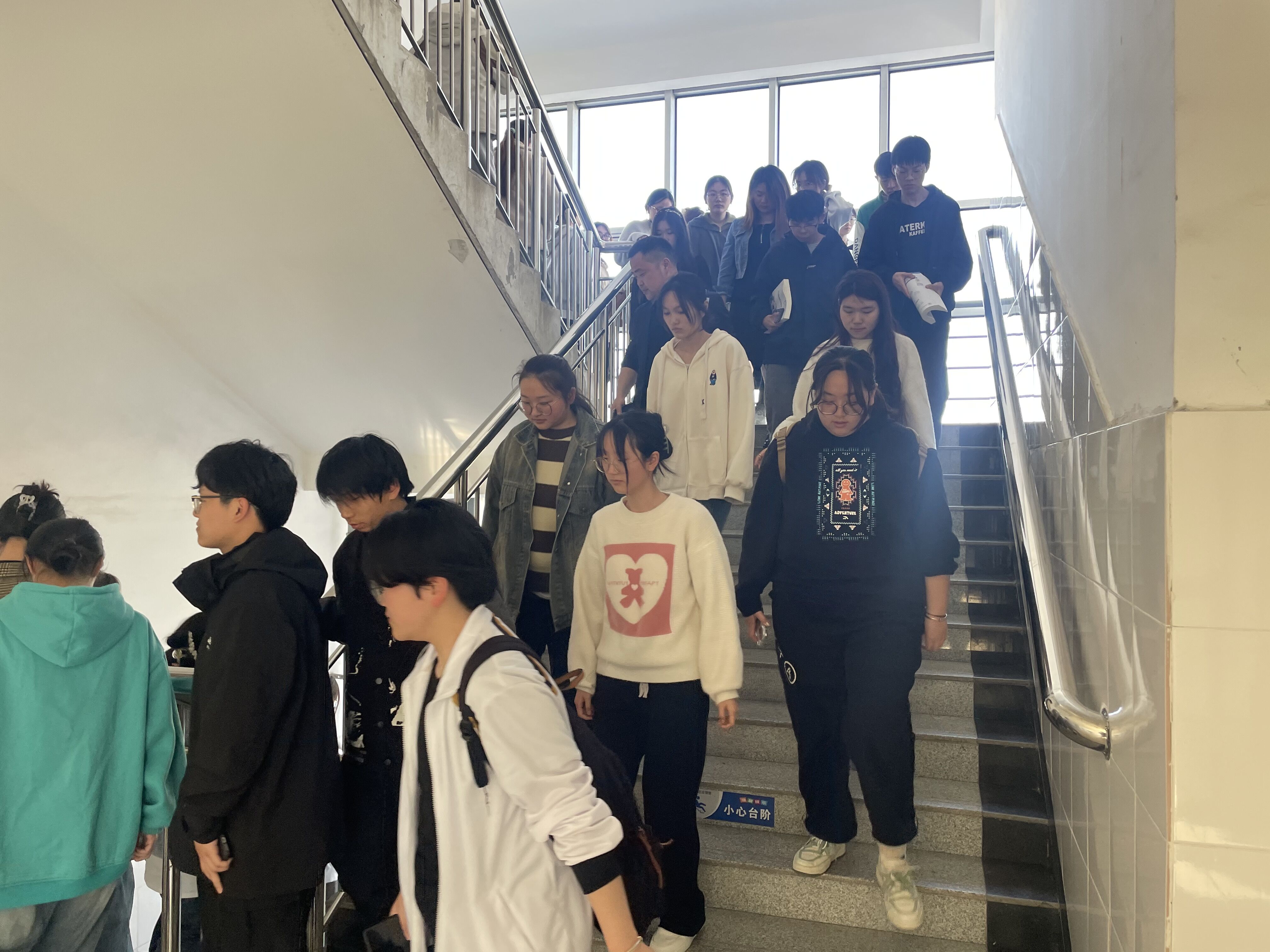 下午3点20分,消防警报响起,演练正式开始。授课教师们快速反应,指导学生手捂口鼻、低头弯腰,有序、快速撤离教室,辅导员在指定点位引导学生按照预定疏散路线有序撤离教学楼,快速奔向操场集合,清点人数后向现场指挥报告。整个过程用时3分50秒。