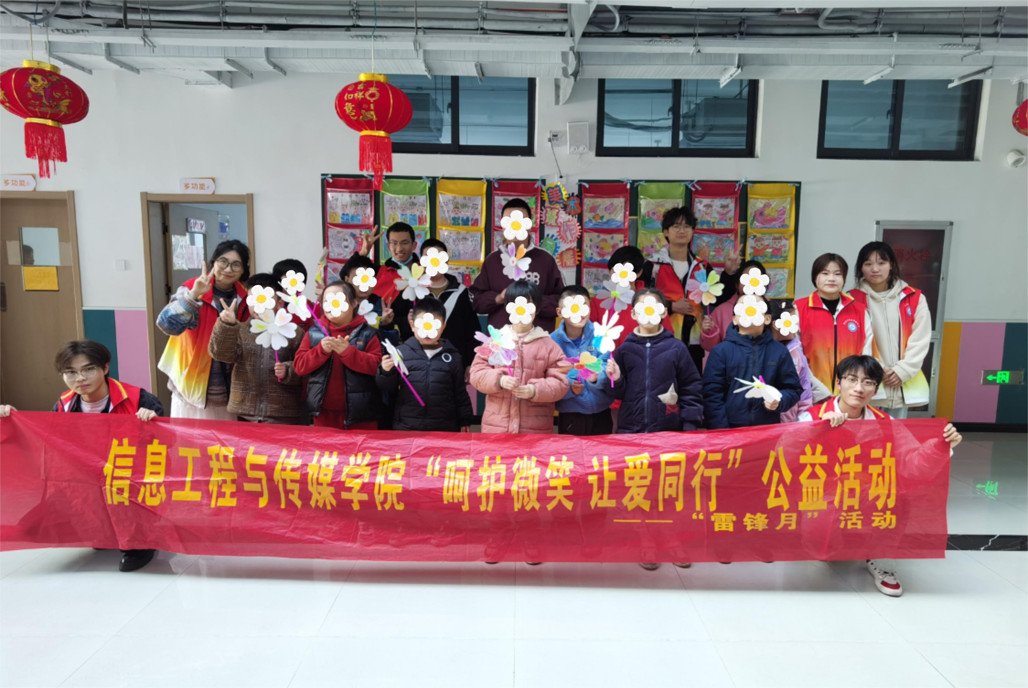 为弘扬雷锋精神,践行奉献、友爱、互助、进步的志愿者价值观,3月28日下午,信息工程与传媒学院组织青年志愿者走进“蓝之天儿童康复中心”,开展“学雷锋活动月”系列活动之“呵护微笑·让爱同行”爱心公益活动。