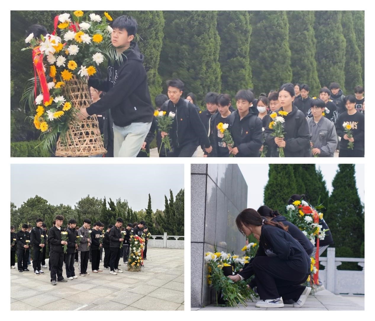 向烈士敬献花篮。鞠躬、敬献花篮、默哀、献花,师生们用素花和默哀表达心中崇高的敬意和深沉的思念。随后,师生们环绕瞻仰纪念碑一周,感恩先烈们的付出,他们用生命践行理想,用坚毅守护人民,用大无畏的牺牲精神为我们铺就了今日的盛世中华。