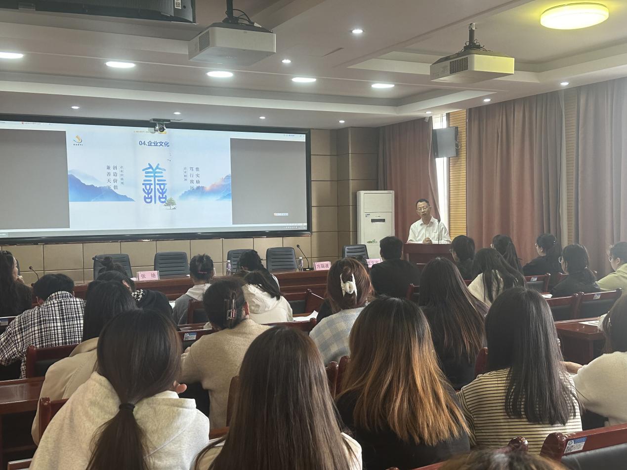 随后,贾毅柏进行企业宣讲。他从企业发展历程、企业文化、企业订单班培养模式、实习实训计划安排等四个方面进行了详细的介绍。希望通过与学校加强深度合作,共同培养出具备药品生产实际操作能力和药品研发创新精神的技术技能型人才,从而为企业的未来发展注入新活力。