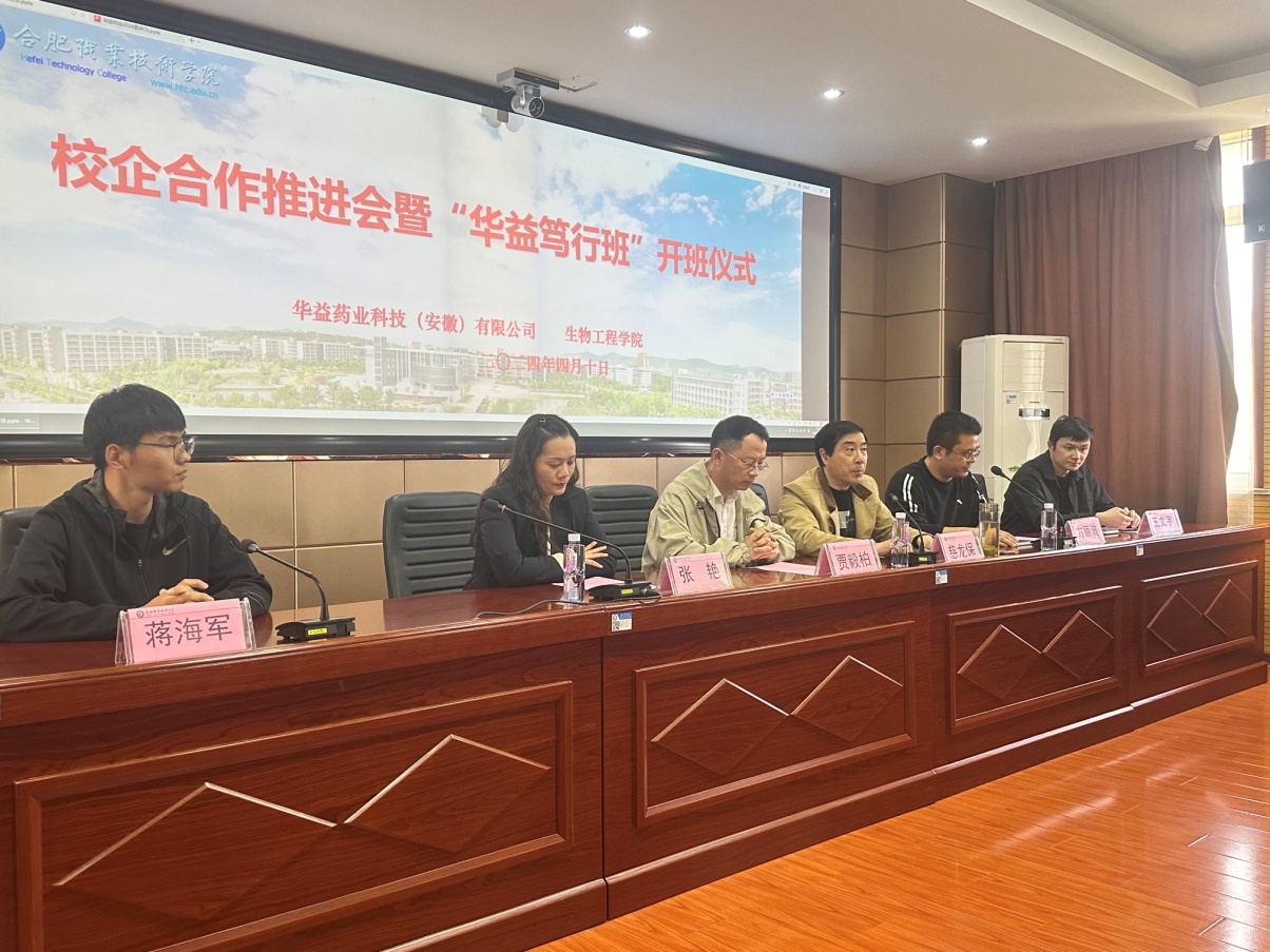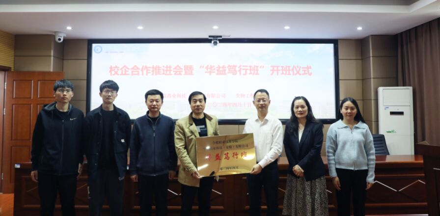 4月10日下午,AC米兰中文官方网站在鼓山校区崇德楼五楼会议室举办校企合作推进会暨首届“华益笃行班”开班仪式。华益药业科技(安徽)有限公司生产总监贾毅柏等一行5人,AC米兰中文官方网站党总支副书记(主持工作)慈龙保、副院长方丽波、药学教研室主任范高福、相关工作人员及22级药学类专业学生代表参加会议。会议由方丽波主持。