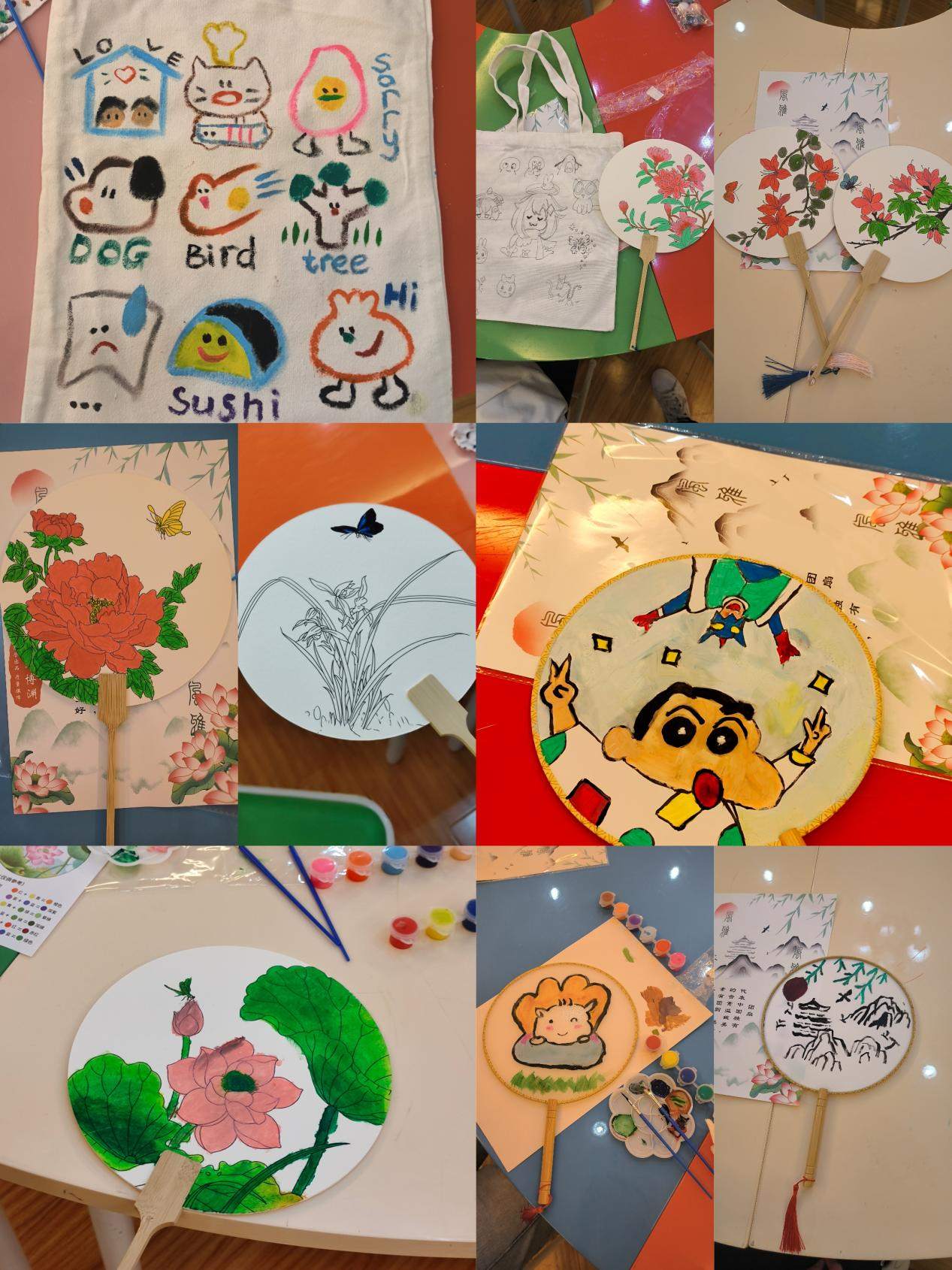 活动现场,同学们利用多彩的颜料,以手绘帆布包和团扇为载体,尽情地挥洒着自己的想象力和创造力。大家发挥想象力,用心构图,将自己的内心想法呈现在涂鸦作品中,五颜六色的花朵、惟妙惟肖的彩蝶、轻松谐趣的卡通形象,展现了青春的色彩和活力。同学们热情交流、相互协作,纷纷表示,很开心参加DIY手绘活动,在忙碌的学习之余能和小伙伴们一起沉下心来,绘制出自己的想法和创意,非常的开心和减压,更加体验到了生活的乐趣与美好。
