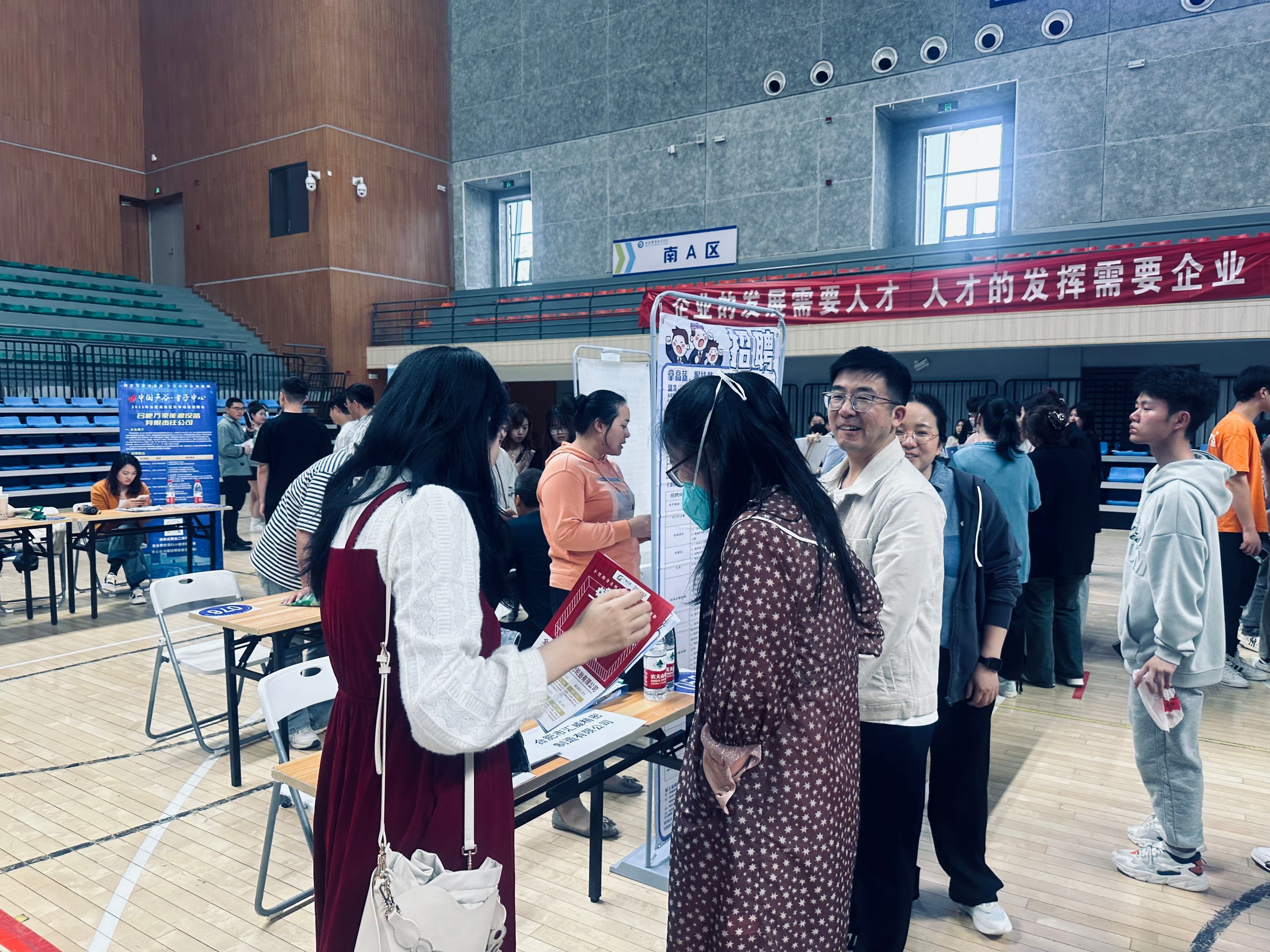 招聘会现场,机电工程学院专兼职辅导员组织学生有序进场,开展简历指导和面试指导;党政领导班子和专职教师与专业对口企业积极交流,了解企业用人需求和行业发展动态。