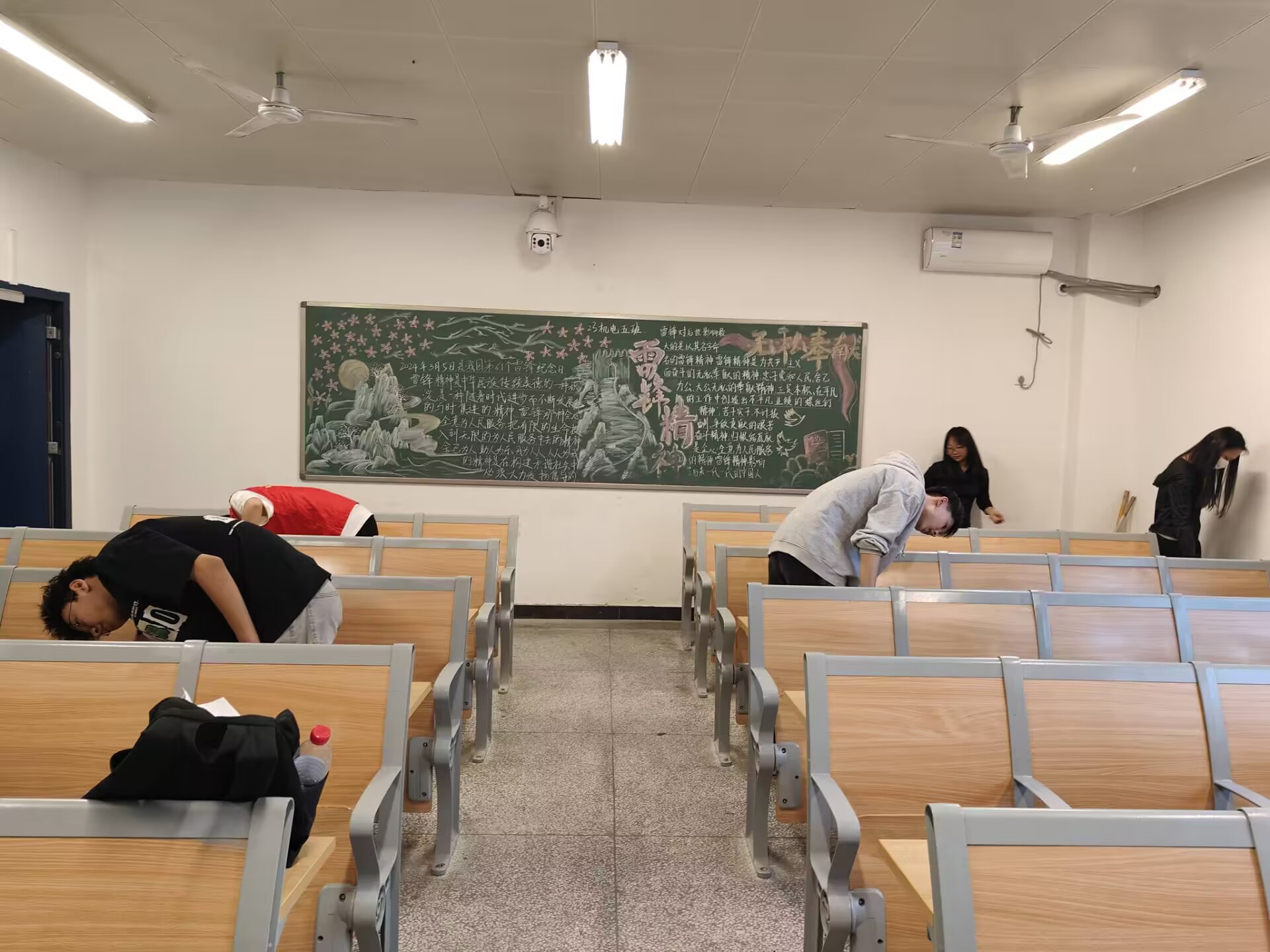 活动开始前,负责人与志愿者们合理有序地分配了各类清扫工作。在进入所需打扫的教室后,志愿者们分工明确,各司其职,无论是扫地、擦窗,还是整理桌椅,都一丝不苟、认真负责。他们有的手持扫帚,认真清扫地面上的每一粒尘埃;有的细心擦拭门窗,清除门窗上存在的污渍;有的整理讲台,使其摆放得井井有条。在这个过程中,每位志愿者都全身心投入,用实际行动为教室的环境做出了贡献。志愿者们在完成各项任务的同时,还积极向班级同学们宣传环保理念,倡导大家共同维护教室卫生。他们的行动感染了各班上自习的同学,大家纷纷表示要以实际行动支持教室环境卫生工作,共同创造美好的校园环境。