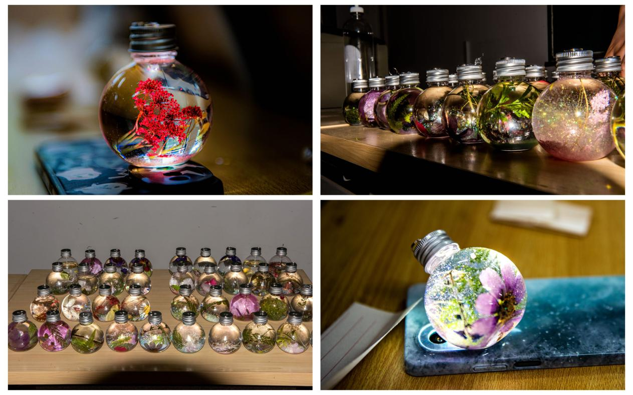 活动现场,同学们热情高涨,他们仔细地挑选材料、设计构思,发挥无限的创意,将彩色干花、亮粉等装饰元素巧妙搭配,赋予每一瓶独特的主题和故事,希望将最美好的祝福装进这小小的玻璃瓶中。有的同学选择了代表母爱的粉色系材料,有的则用清新的绿意来表达对母亲的祝福。活动还设置了作品展示环节,所有成品都被精心摆放在特设的展区内,供大家欣赏、拍照。风格迥异的“微瓶世界”不仅承载了同学们的心意,更突显出母亲节这一特殊日子的温情。