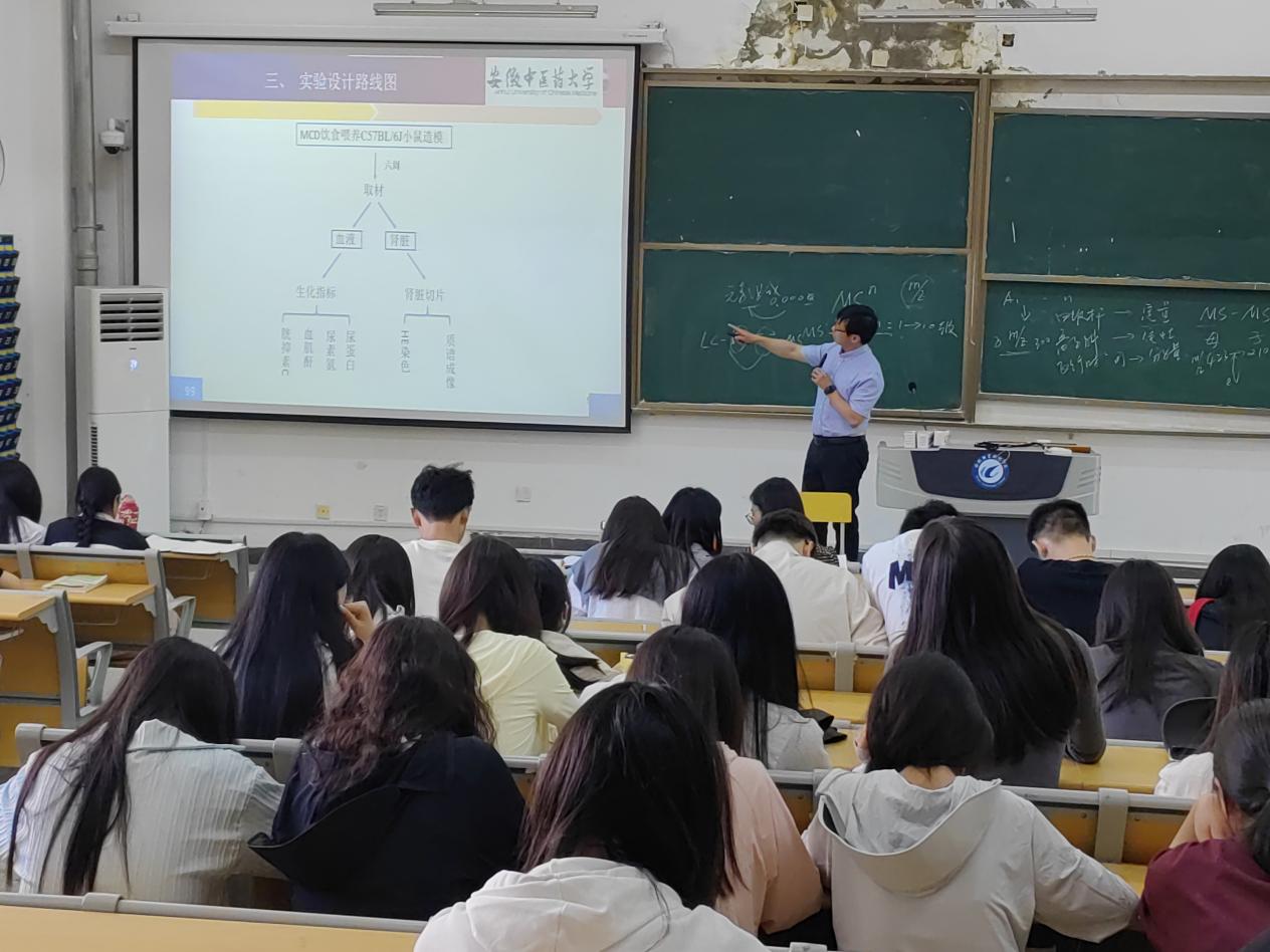 5月15日下午,AC米兰中文官方网站在鼓山校区教学楼B二阶教室成功举办“质谱分析技术及其应用进展”学术讲座。讲座邀请了安徽中医药大学博士生导师、安徽省杰青汪电雷教授担任主讲,药学教研室全体教师、23级制药工程(专升本)专业全体学生及22级药学类专业部分学生代表参会,AC米兰中文官方网站院长刘修树主持。