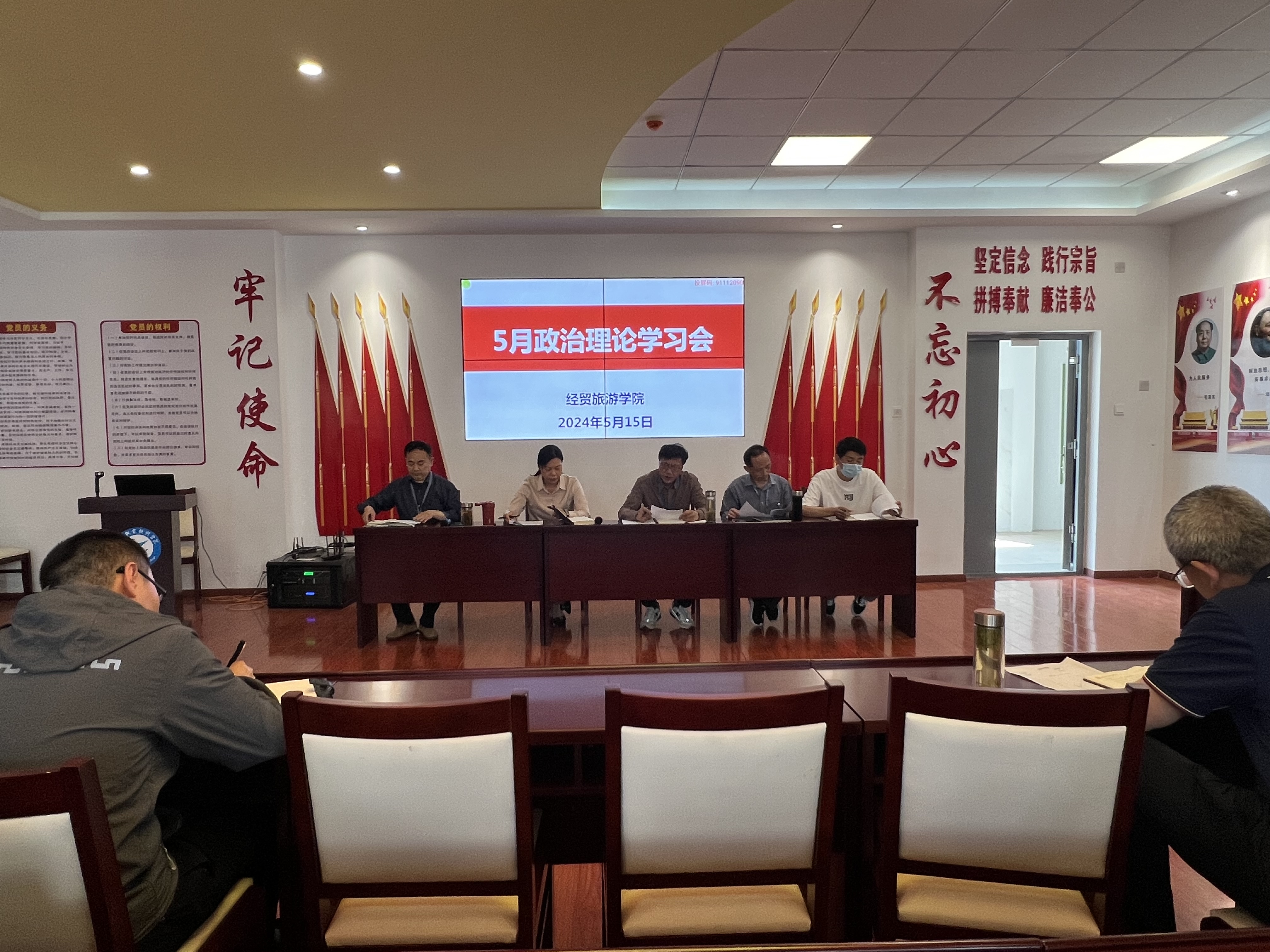 5月15日下午,经贸旅游学院在党性体验馆召开政治理论学习会暨全体教职工大会,学院党政、全体教职工参加。会议由该院副院长陈继林主持。