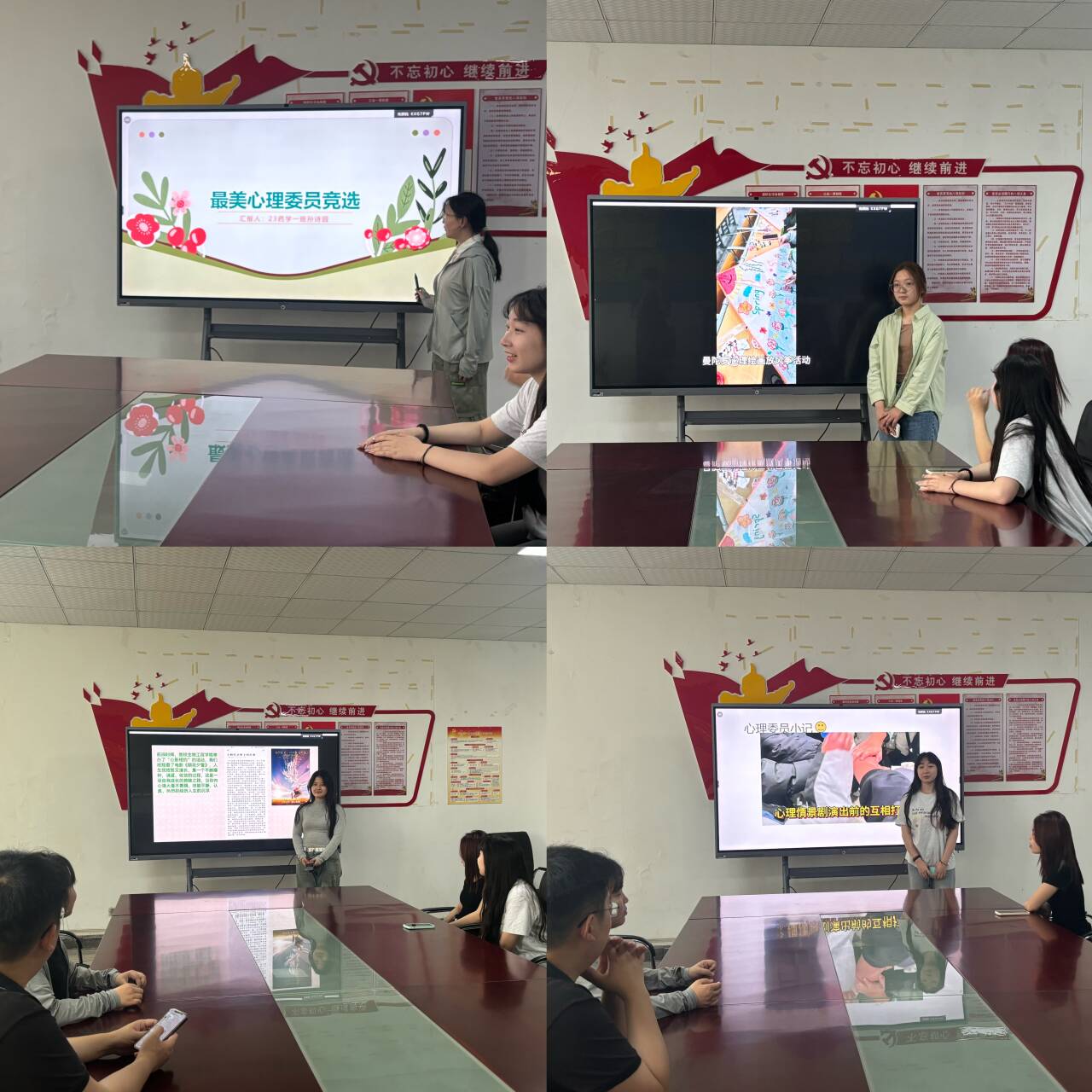 在评选活动中,6位参赛的心理委员通过口头陈述和PPT展示的方式,分别介绍了个人基本情况、工作完成情况和对职务的理解等方面。经过激烈的竞争,评委们根据选手们的综合能力和表现,最终选出了4位获奖者。