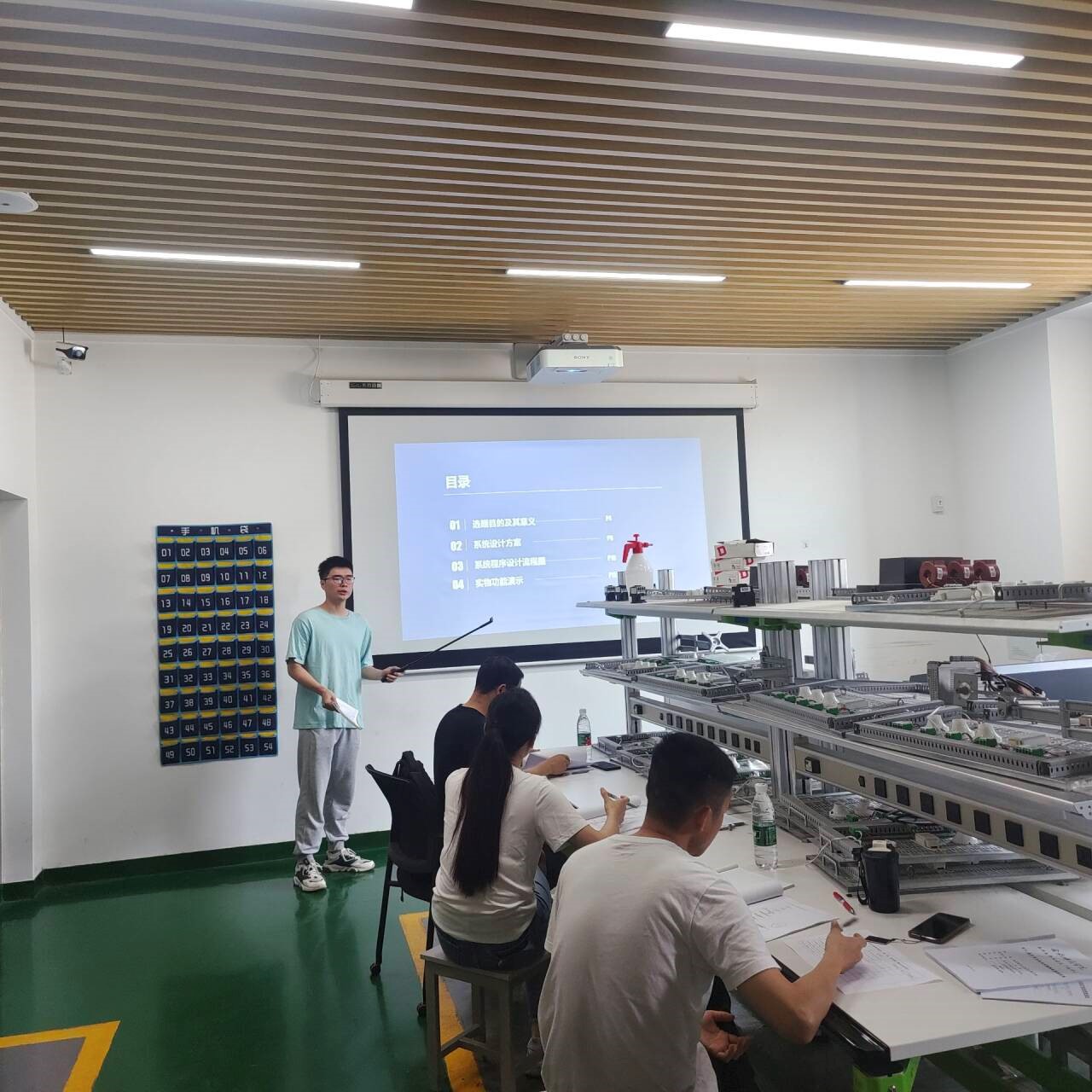 此次毕业论文答辩内容涵盖工业机器人、单片机、PLC等多个领域,联合培养本科生结合PPT讲解、设计作品展示等方式向答辩专家介绍了自己的毕业设计和研究成果。在此次答辩会上,学生表现出色,不仅展示了扎实的专业知识和技能,更体现了创新思维和解决问题的能力。