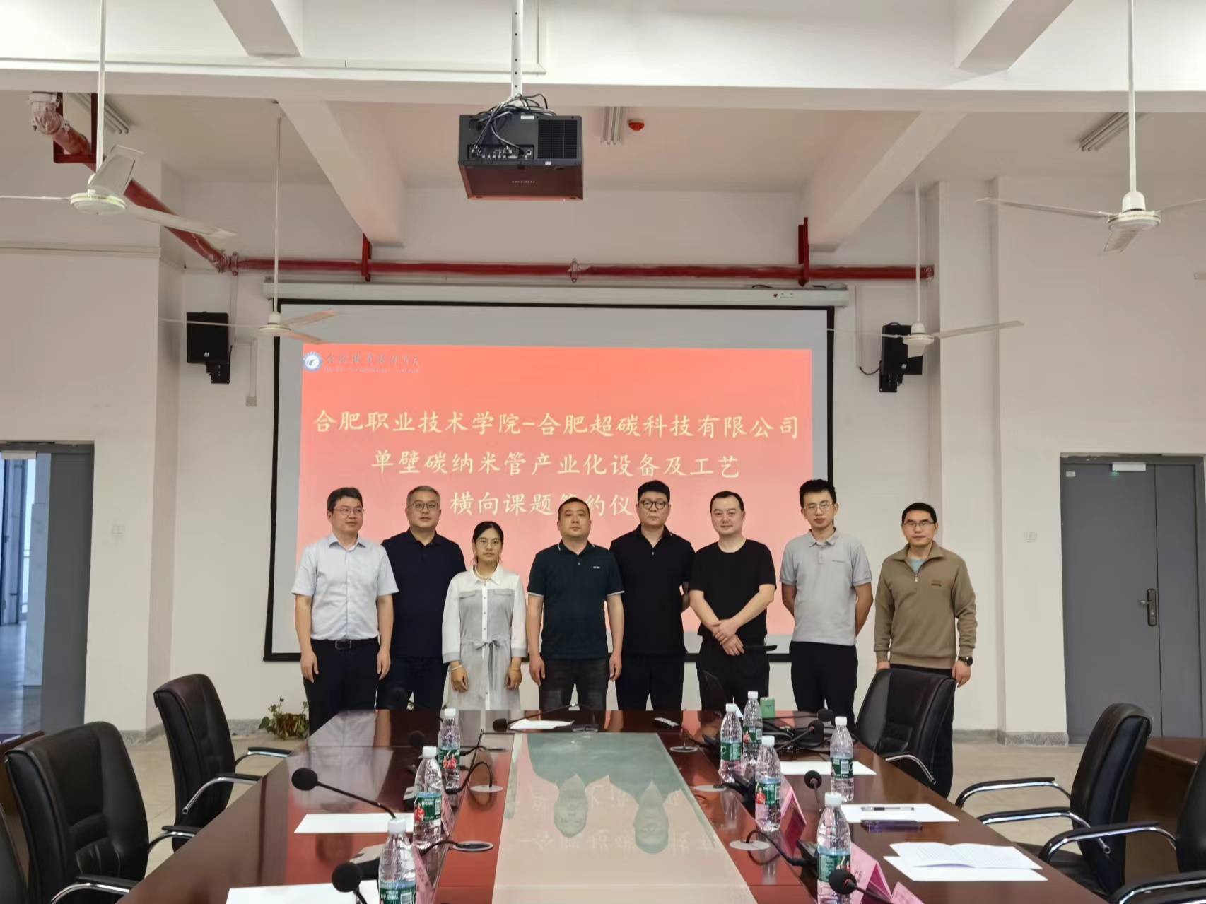 5月27日下午,AC米兰中文官方网站-合肥超碳科技有限公司单壁碳纳米管产业化设备及工艺横向课题签约仪式在机电工程学院2楼会议室举行。合肥超碳科技有限公司法人代表王储携团队7人应邀参加,机电工程学院崔霞博士团队和相关人员参加了签约仪式。