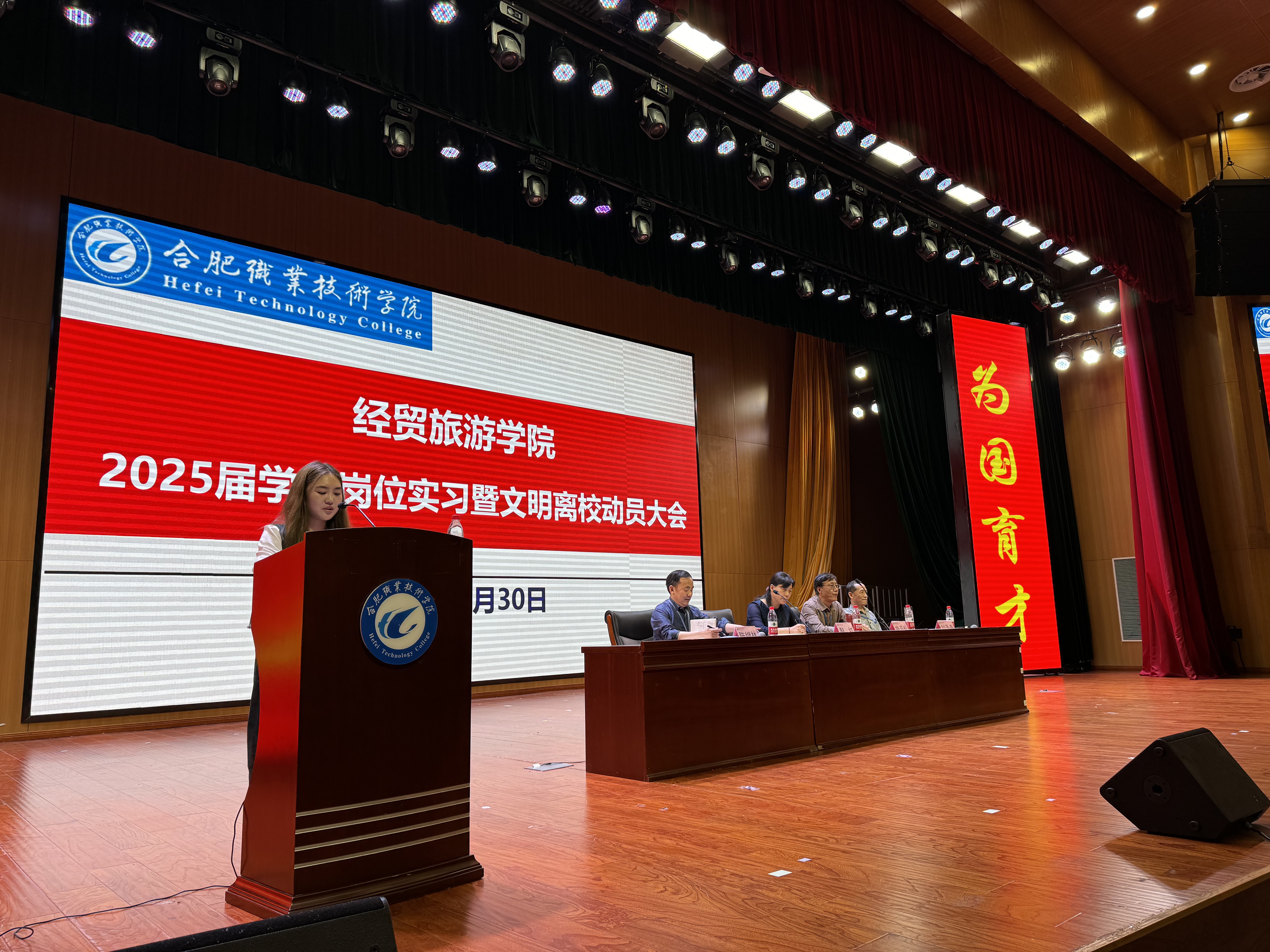 为了进一步做好实习、就业工作,扎实推进实习与就业工作方案,促进校企深度合作,提高人才培养质量,促进高质量就业,5月30日下午,经贸旅游学院在汇心湖校区大学生活动中心礼堂召开2022级学生岗位实习动员大会,会议由副院长陈继林主持,党总支书记梅亚松、院长赵红、副书记刘圣春出席会议,各教研室主任、教学办、学管办主任,全体2022级辅导员、2022级实习生参加大会。