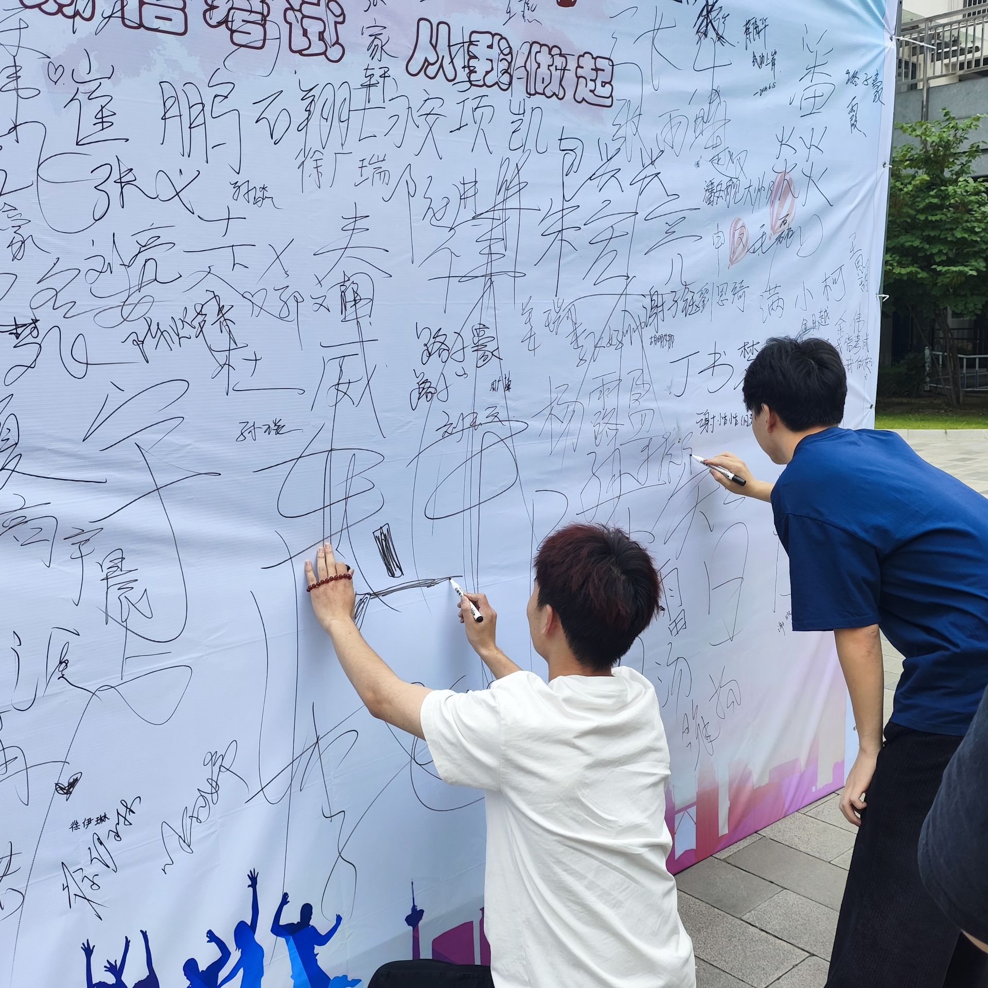 接着,在志愿者的引导下,参与活动的学生有序地在“诚信考试,从我做起”的横幅上签下了自己的名字,表明自己对于诚信考试的坚定决心。