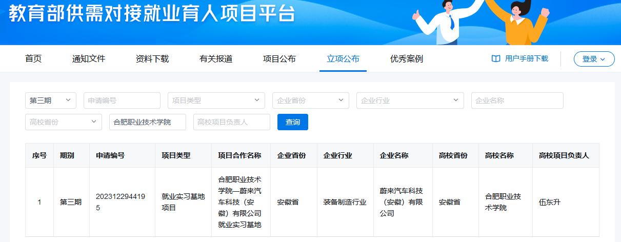 6月14日,教育部公布了第三期供需对接就业育人项目立项名单。由学校与蔚来汽车科技(安徽)有限公司共同申报的项目:AC米兰中文官方网站—蔚来汽车科技(安徽)有限公司就业实习基地成功立项。