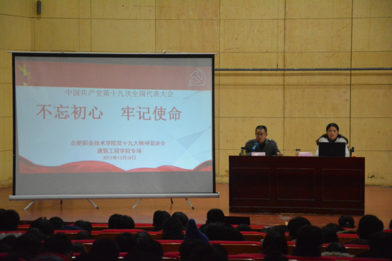 通过宣讲,同学们增强了对党的十九大报告的了解,对习近平新时代中国特色社会主义思想有了进一步的认识和理解。党的十九大报告中,习近平总书记对青年一代寄予了殷切期望,“青年兴则国家兴,青年强则国家强”,这感人肺腑的话语激发了青年学生的责任感和使命感,激励他们在未来的日子里努力学习知识技能,为稳重求进的合职建工、为砥砺奋进的合职再添辉煌;不忘初心,牢记使命,继承老一辈人前仆后继的奋斗精神,在实现中华民族伟大复兴的道路上接力前行。(供稿:建筑工程学院 编辑:沈婉婉)