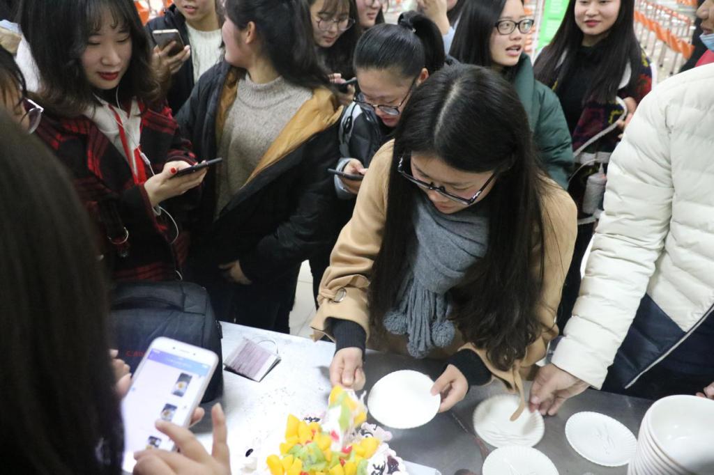 吃完热腾腾的水饺 ,大家共同分享了杨老师带来的蛋糕。这一晚,每个人的脸上都漾着笑意,每颗心都感受到了集体的温暖。同学们更加深刻的体会到中国传统文化的魅力,懂得团结协作的重要性。