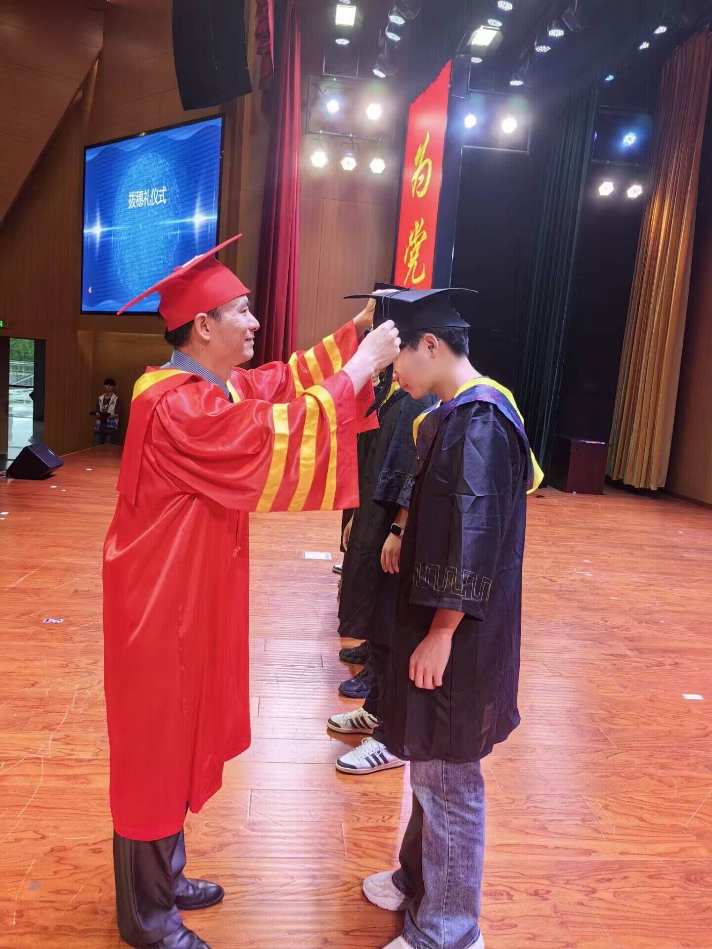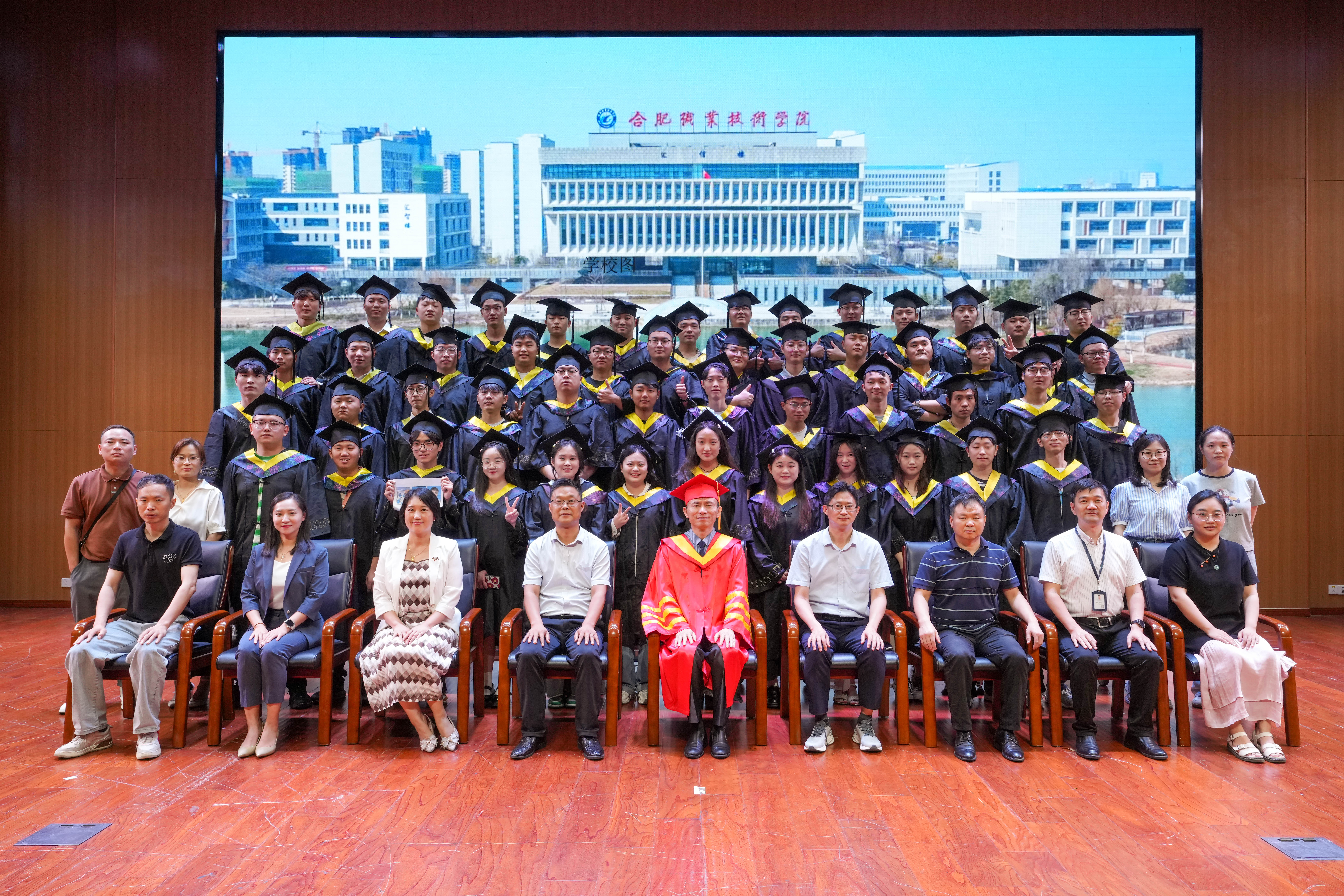 毕业典礼在庄严的国歌声中拉开帷幕。主席台就座的领导为毕业生代表颁发了毕业证书、学位证书,为校级和省级优秀毕业生颁发了荣誉证书。校长檀明为毕业生扶正流苏,问候祝贺。这郑重的仪式,标志着同学们学业的圆满完成,也意味着他们即将从美丽的合职校园迈向社会。毕业生们脸上洋溢着自豪与喜悦,伴随着掌声和祝福,带着母校的期望,即将踏上新的人生旅程。许修建作为毕业生学生代表发言,他回顾了在合职追梦奋斗的两年时光,表达了对母校的热爱和感谢、对父母的感恩、对师友的不舍,表示将践行合职校训,争做有创新精神新时代青年人。最后,毕业典礼在《合职校歌》优美的旋律中落下帷幕。