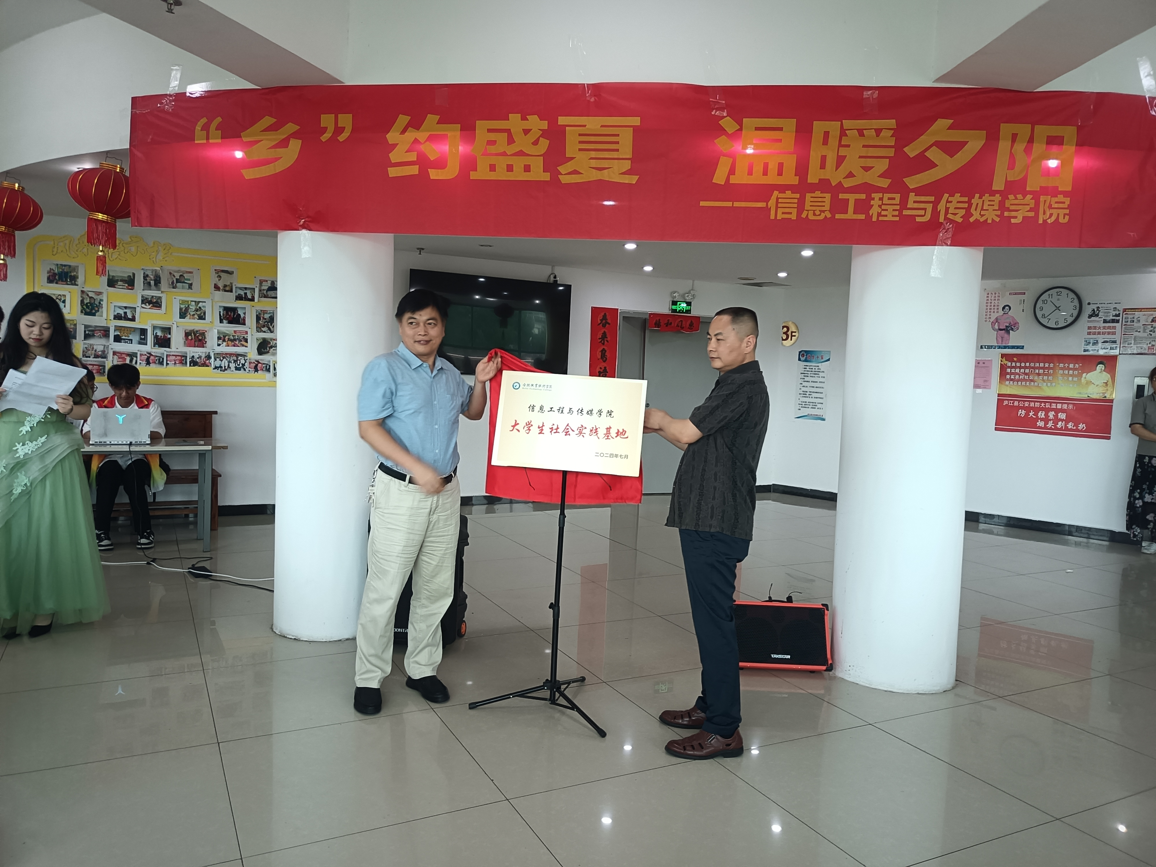 文艺演出前,庐江县怡和园养护康复中心和信息工程与传媒学院举行“大学生社会实践基地”揭牌仪式。怡和园养护康复中心董事长朱长飞、学院党总支副书记尹仕果共同为基地揭牌。尹仕果回顾了近年来学院与怡和园养护康复中心共同举办的多次活动,展望“大学生社会服务实践基地”建设的美好愿景。他希望同学们充分利用好基地资源,积极弘扬志愿服务精神,在实践活动中磨炼意志、增强本领,齐心协力将志愿服务活动常态化、长效化,打造校地共建实践育人的特色品牌。