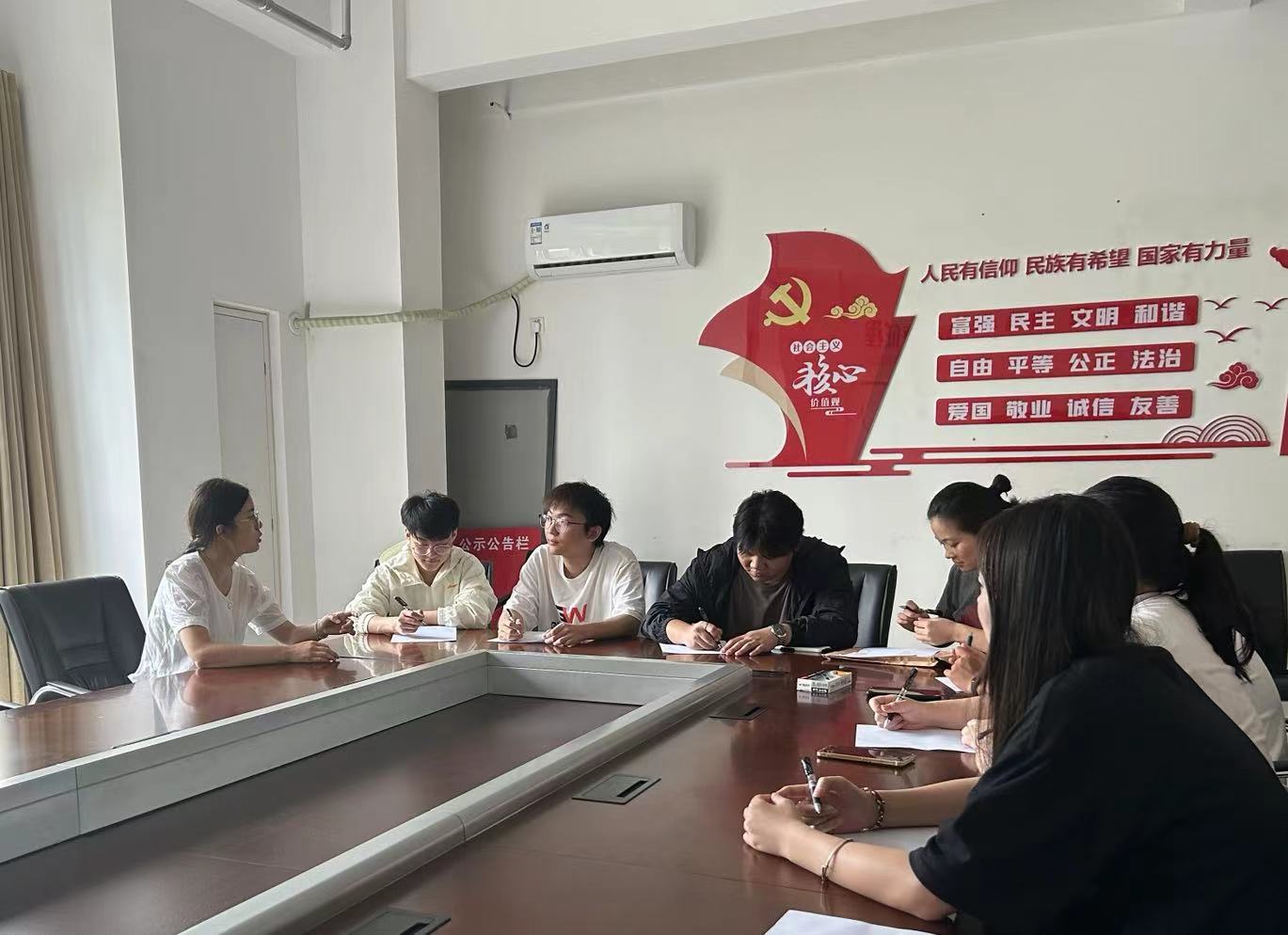 下午,团队成员在马克思主义学院党员活动室开展了暑期“三下乡”实践活动交流总结会,团队成员分别交流分享了各自的活动收获和感受,对此次活动做了全面梳理、回顾和总结。