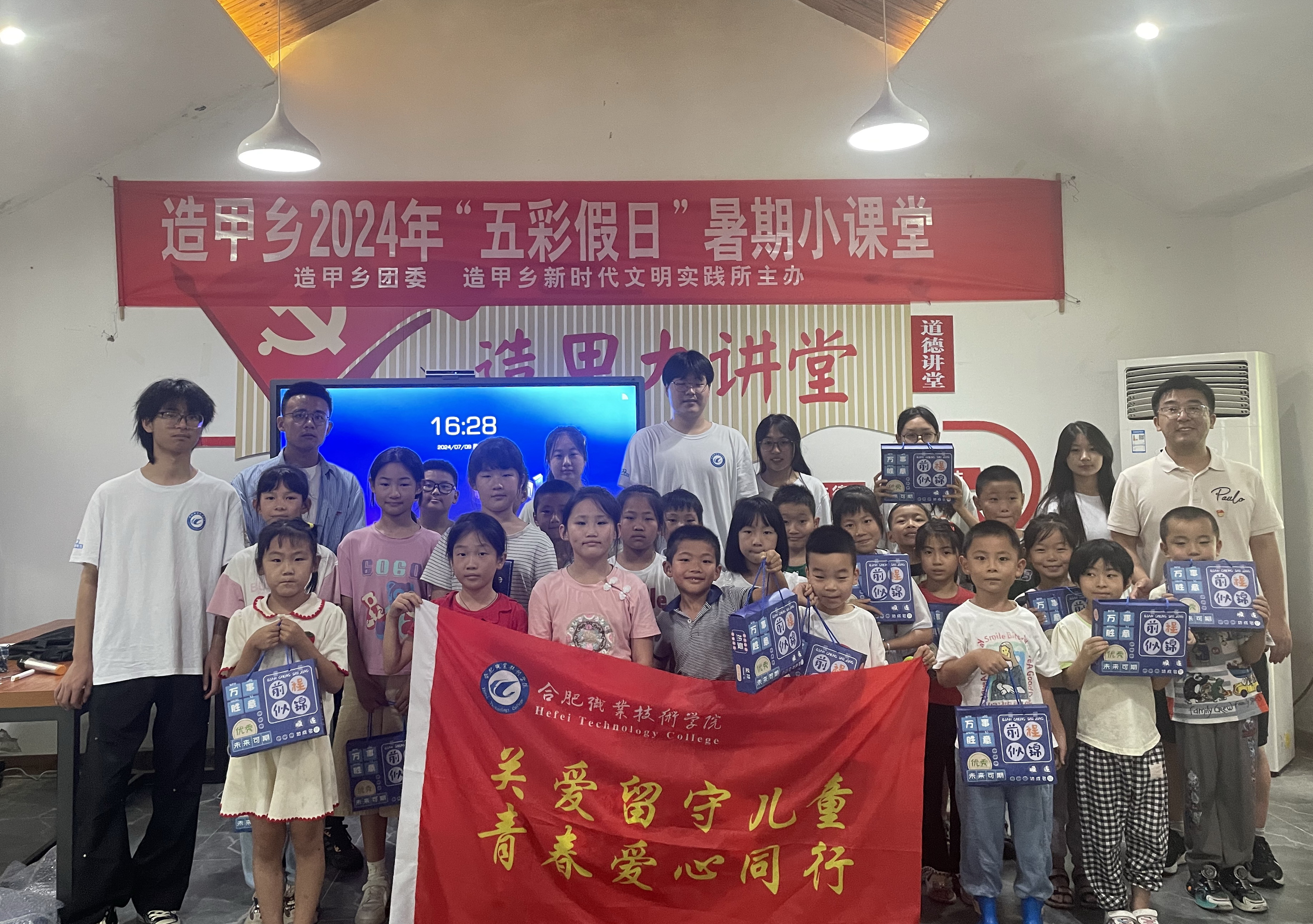 为深入学习贯彻习近平新时代中国特色社会主义思想,更好地帮助留守儿童全面发展,助力留守儿童思想政治启蒙和健康成长。7月9日至13日期间,机电工程学院“关爱青春”红星赤梦实践队,以“关爱留守儿童,青春爱心同行”为主题,深入长丰县造甲乡,与当地团委合作,共同举办了“五彩假日”小课堂活动。这次别开生面的“三下乡”活动不仅丰富了当地儿童的暑假生活,更为他们的心灵成长带来了积极影响。
