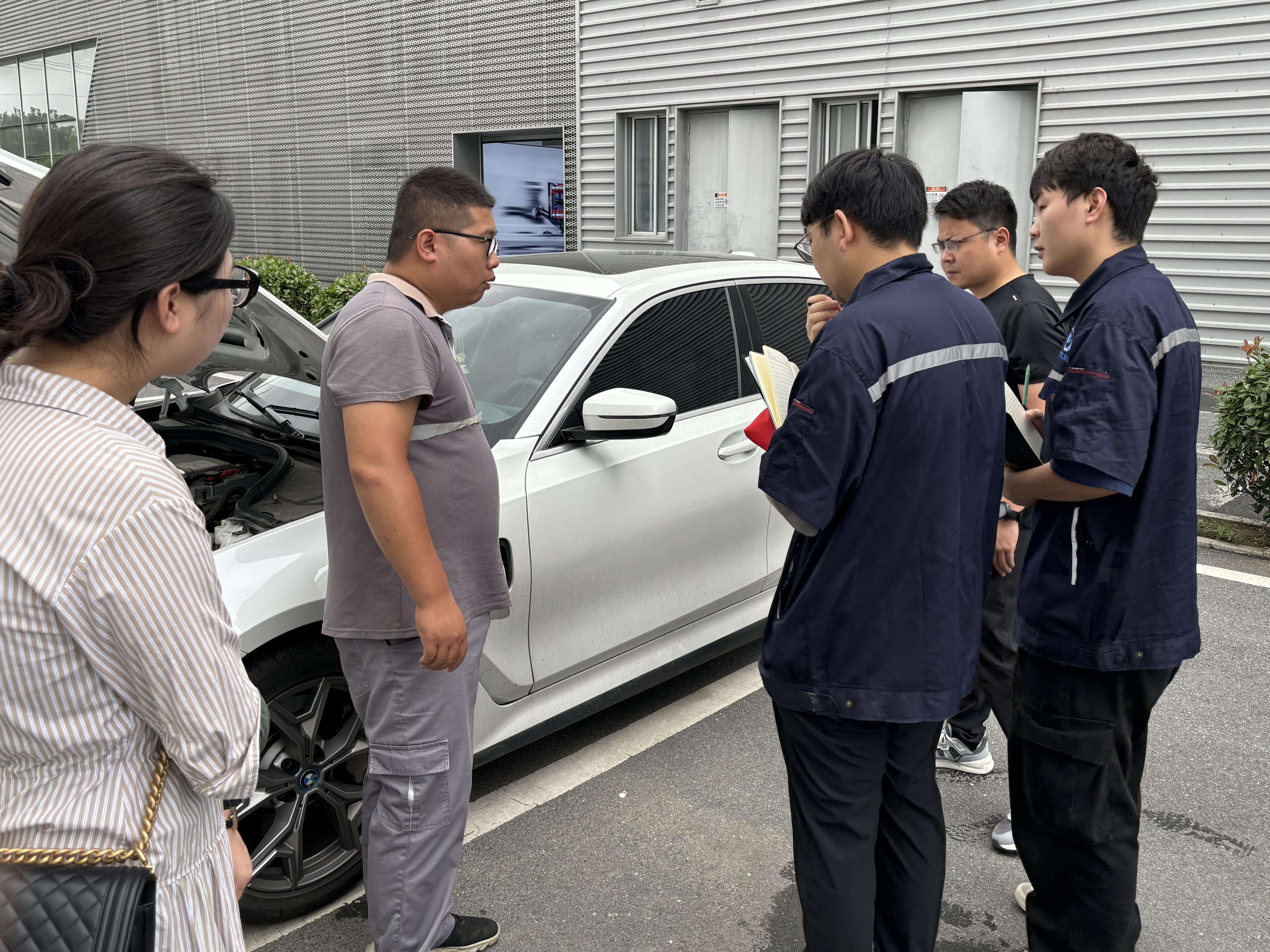 宝之祥4S店的负责人孙经理热情地接待了来访的暑期实践团队, 并为同学们介绍了售后维修车间各工位的品牌优势和工作流程,重点讲解了有关新能源产业调查相关的行业内情况。通过与现场企业专业维修员工的交流,同学们获得了宝贵的行业信息和调查思路。