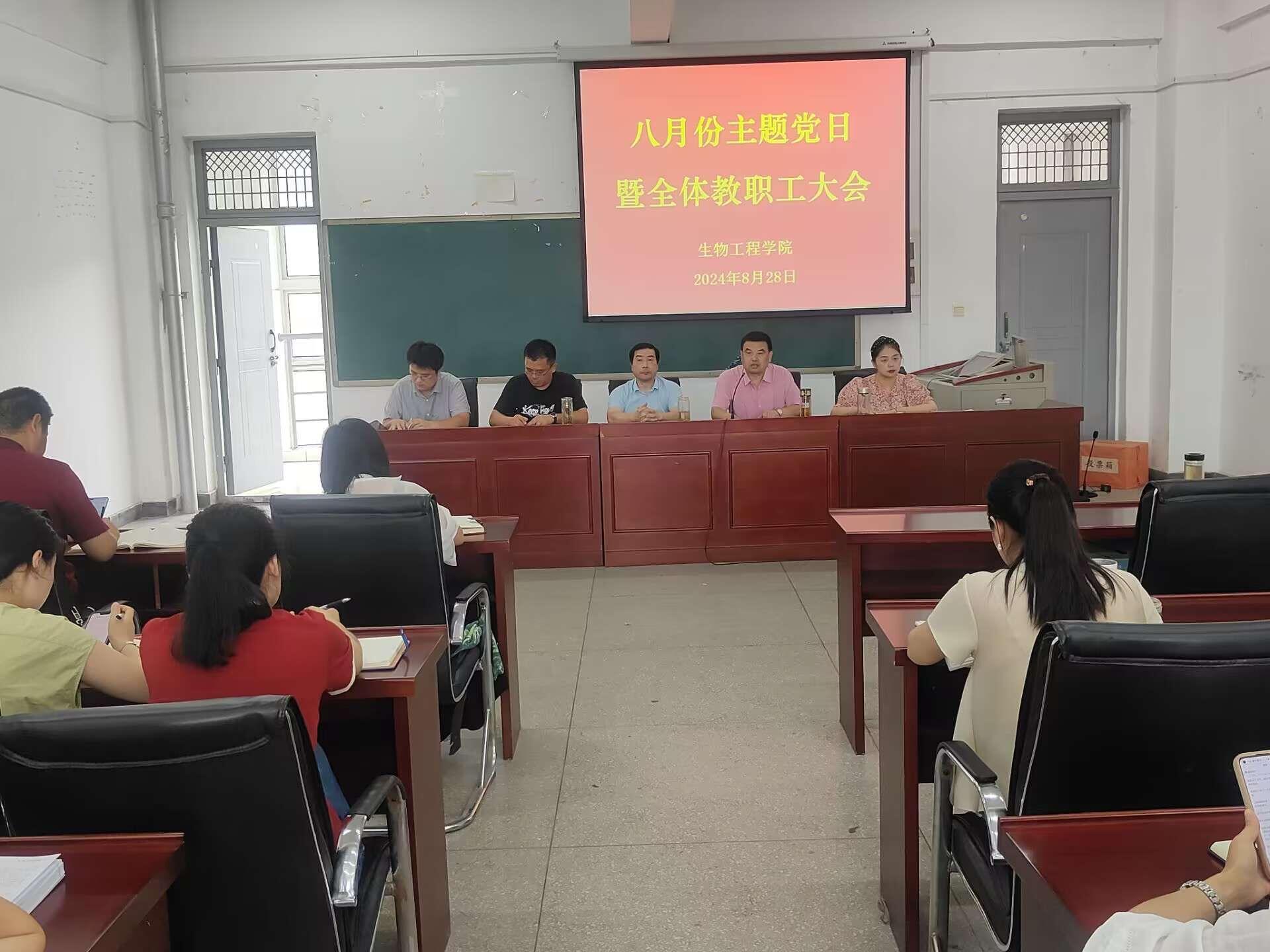为巩固提升学习贯彻习近平新时代中国特色社会主义思想主题教育成果,深入推进党史学习教育常态化长效化,进一步严肃党内组织生活,扎实做好开学工作,8月28日,AC米兰中文官方网站党总支在生化楼A305室召开八月份主题党日活动暨全体教职工大会,会议由该院党总支副书记(主持工作)慈龙保主持,全体教职工参加会议。