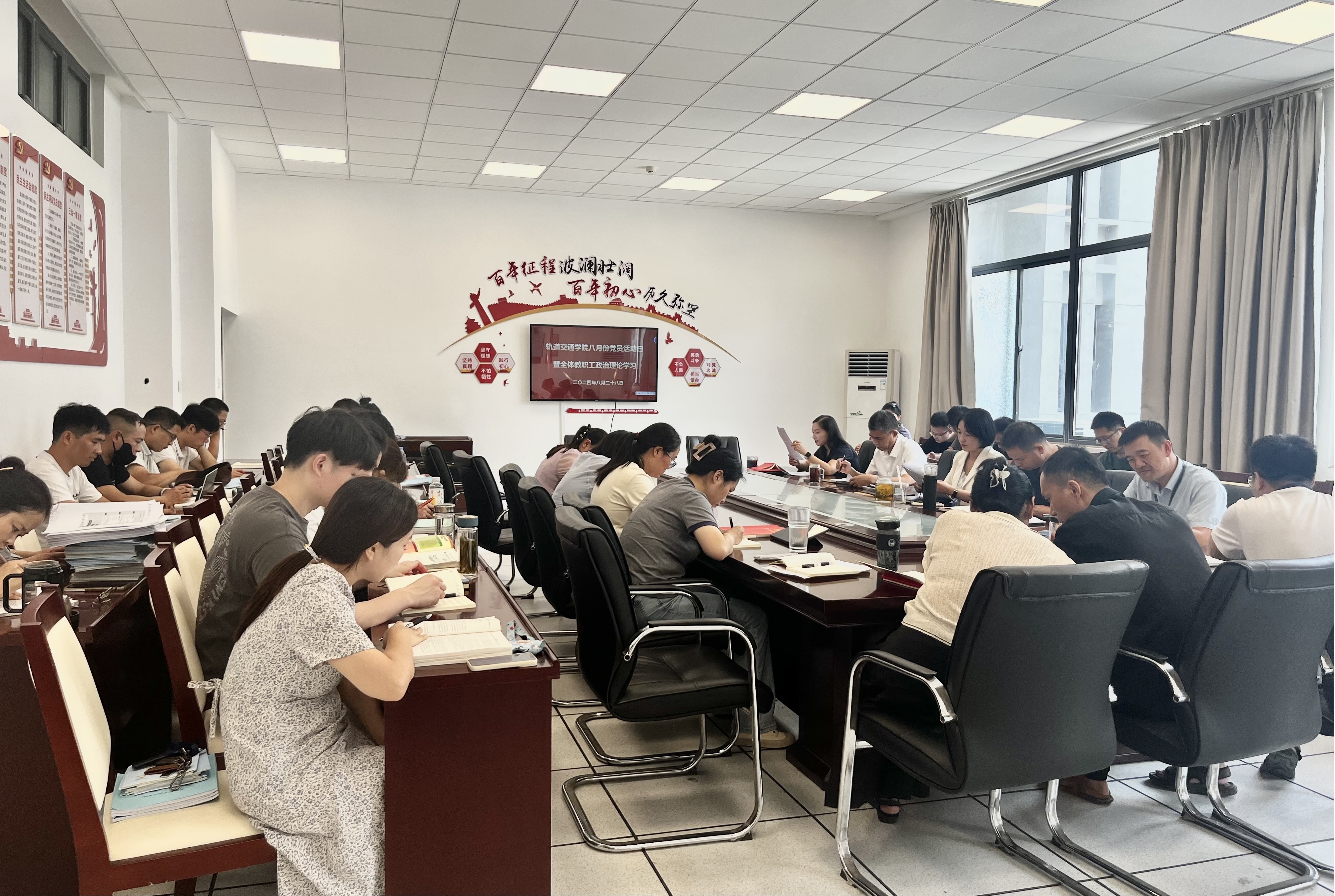 为深入学习贯彻党的二十届三中全会精神,以高质量党建助推学校高质量发展,8月28日,轨道交通学院党总支组织召开8月份党员活动日暨全体教职工政治理论学习会。轨道交通学院党总支书记佘海月主持本次会议,全院教职工参加本次学习活动。