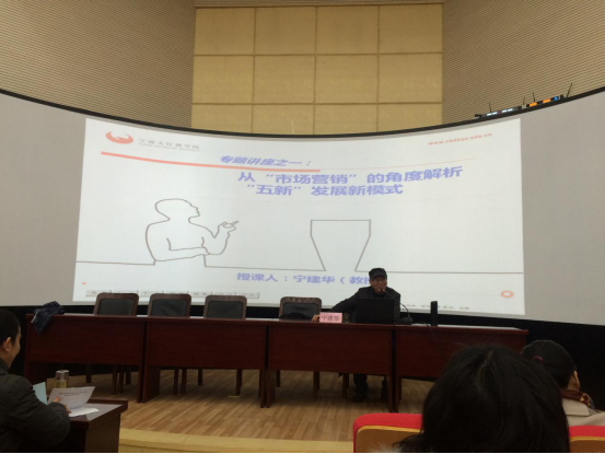 宁教授首先详细地介绍了马云“五新”观念的内容,即新零售、新金融、新制造、新材料、新能源,之后结合实例从市场营销角度解读了“五新”发展模式及其运用。讲座中,宁教授多次提到市场营销、电子商务等专业的学生口才要好、沟通能力要强,鼓励学生敢于大声表达自己的想法,建议老师要不断地学习与探索新的教学方法,调动学生自我表达的积极性,帮助学生提高沟通能力。