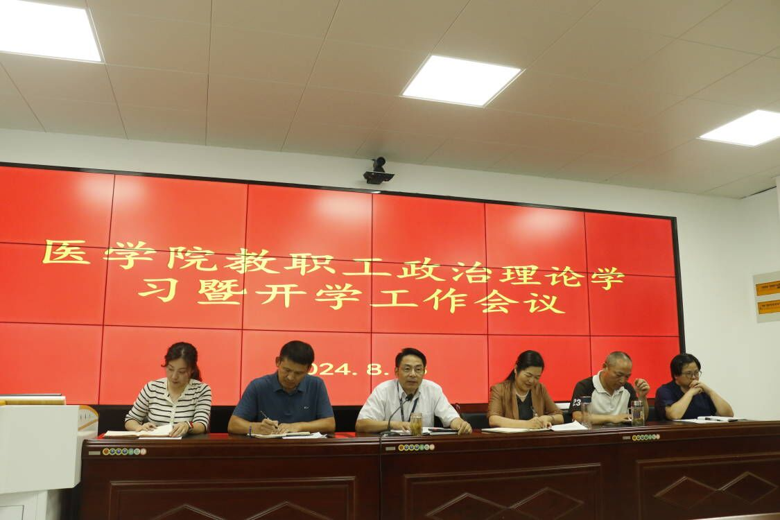新学期,新开始,新希望。为深入学习贯彻落实党的二十届三中全会精神,引领全院教职工更快更好融入新学期各项教育教学工作,8月28日下午,医学院在医学楼大会议室召开八月份教职工政治理论学习暨新学期开学工作会议,校党委书记王杰才出席会议并讲话,医学院全体教职工参加,会议由医学院党总支副书记(主持工作)邹华兵主持。