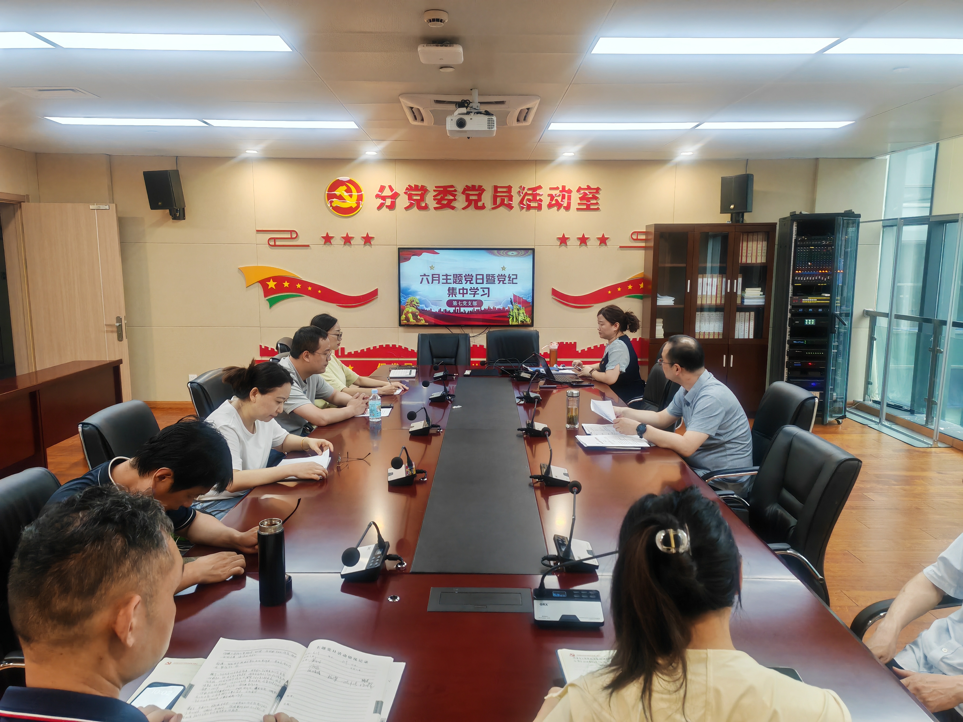 6月19日上午,第七党支部在汇心湖校区609会议室组织开展6月份主题党日活动暨党纪集中学习。支部全体党员、预备党员参加了活动。支部书记黄永生主持会议。