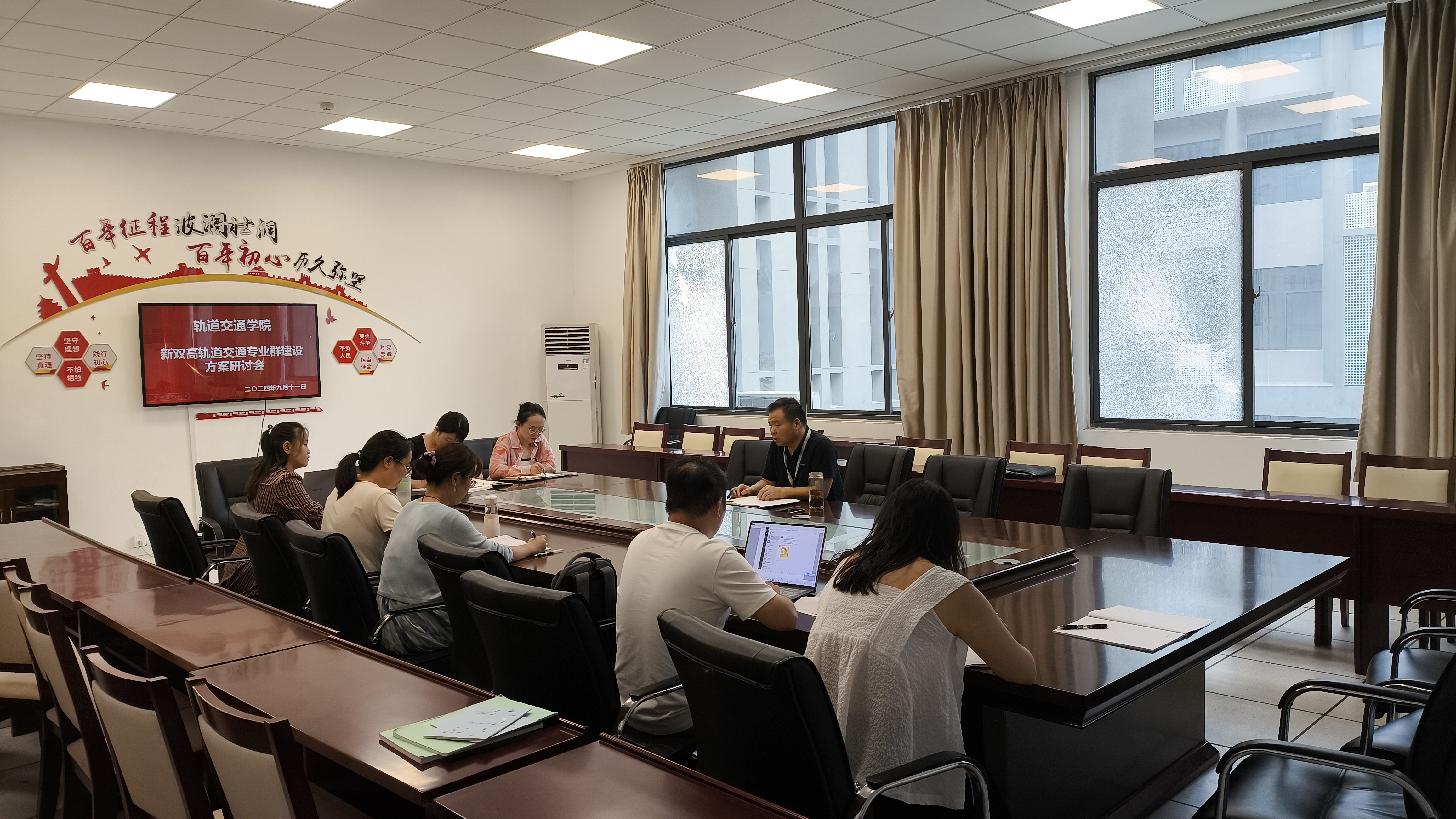 为做好新一轮“双高”申报工作,9月11日,轨道交通学院召开新双高轨道交通学院专业群建设方案研讨会。该院院长杨光明主持会议,教研室主任,专业带头人和部分教师代表参加会议。