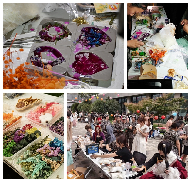 香薰蜡片手工制作的现场,参加活动的同学们小心翼翼地将熔化的蜡倒入自己制作形态各异的模具,并快速点缀数朵自己心仪的干花装饰,待蜡油凝固后,一枚枚造型独特、芬芳浓郁香薰蜡烛就制作完成了。看到自己制作的一件件精美“佳作”,参与的同学也收获了“丰收”的喜悦。