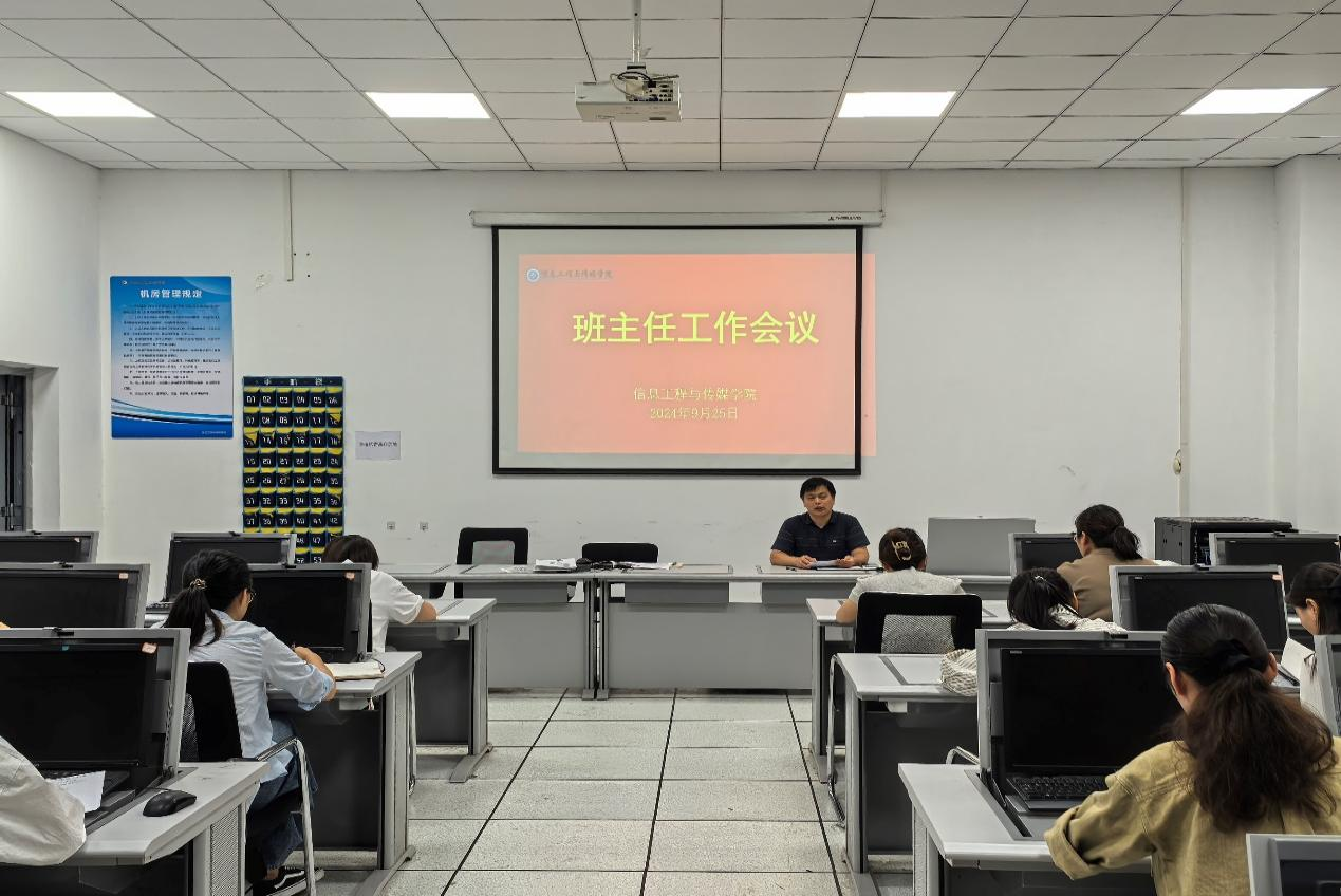 为巩固新学期良好的开学工作成果,做好下一阶段学生思想教育和管理工作,9月25日下午,信息工程与传媒学院召开新学期第二次班主任工作会议。会议由学院学管办主任王慧玲主持,全体专职辅导员和23、24级在校班主任参加此次会议。