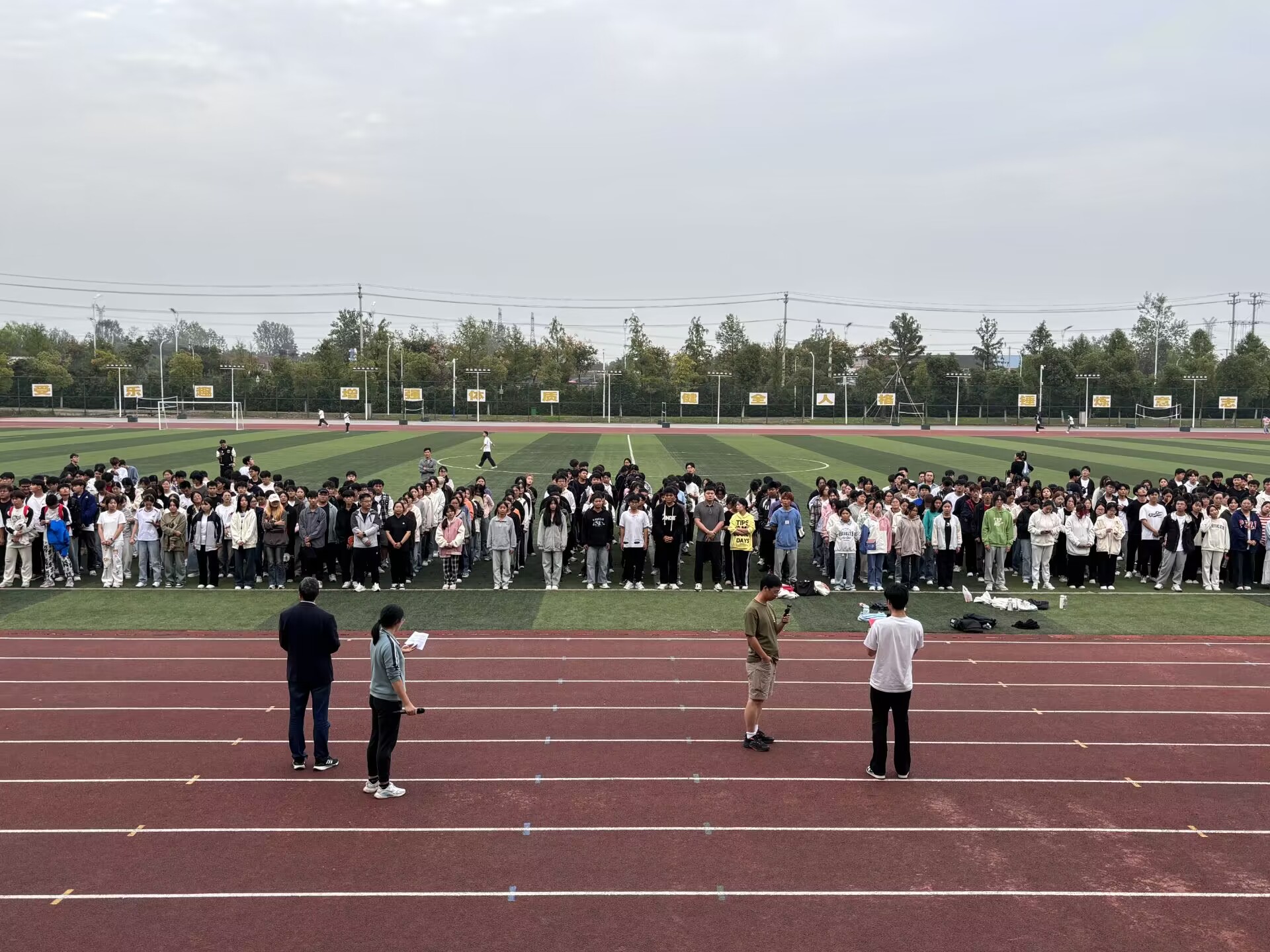 10月10日下午,AC米兰官网2024级学生健身跑启动仪式分别在两校区田径场同时进行。基础教育学院体育教研室全体教师、2024级部分学生代表参加了此次启动仪式。基础教育学院党总支书记吴俊峰、副院长(主持工作)施敏发等出席。