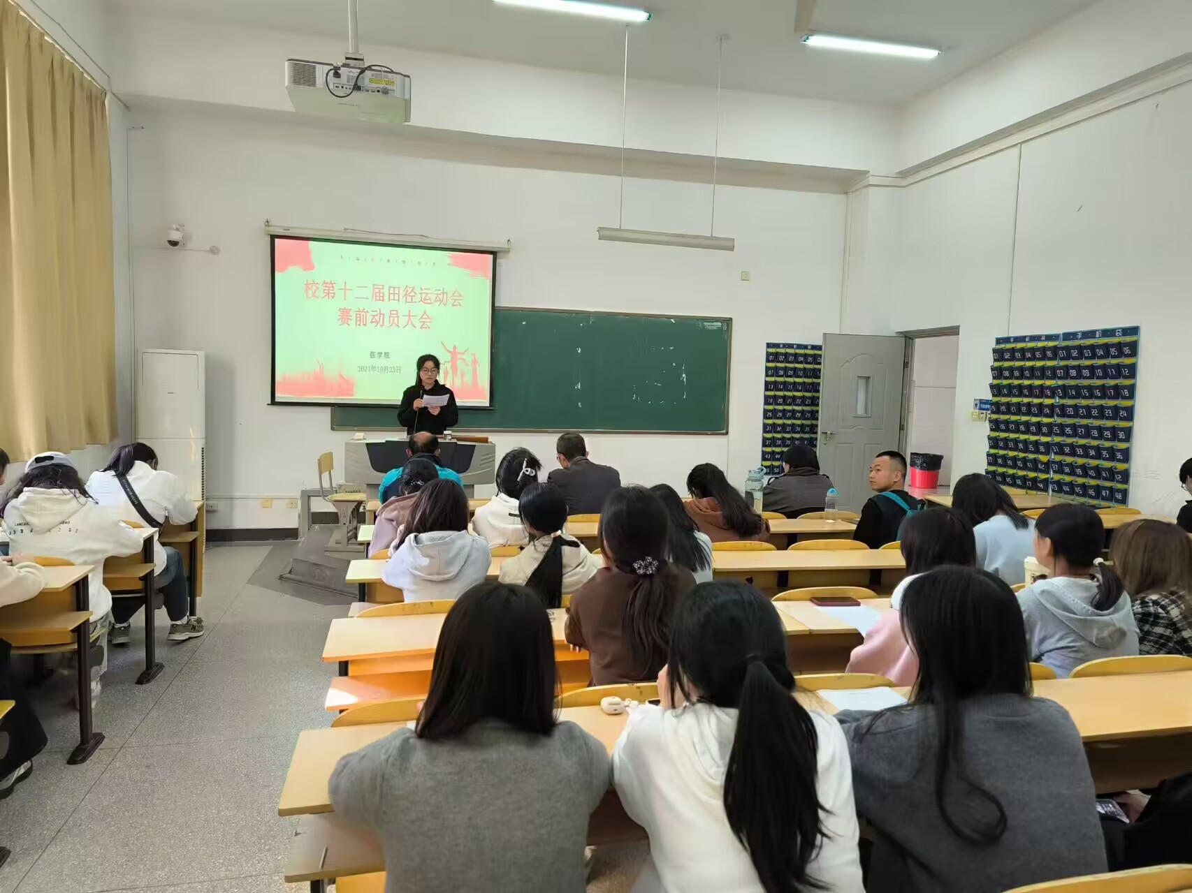 为迎接学校第十二届田径运动会,充分调动运动员积极性,增强运动员们的责任感,同时保障校运会各项工作顺利开展,医学院于10月23日下午在D101教室召开校第十二届田径运动会动员大会。医学院党总支副书记梁春艳,医学院外聘教练及全体运动员参加本次大会,会议由医学院团总支书记刘惠主持。