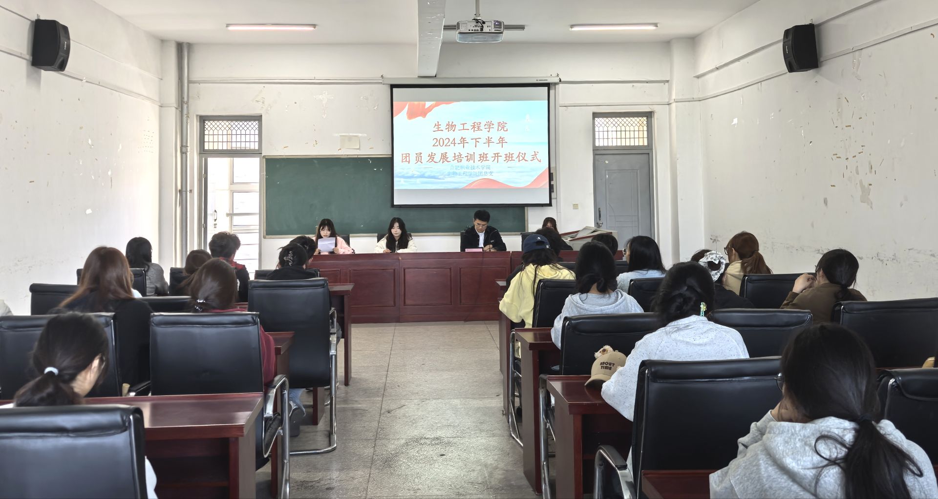 10月23日中午,AC米兰中文官方网站2024年下半年团员发展培训班开班仪式在生化楼A305会议室举行。AC米兰中文官方网站团总支书记季学强老师、优秀团员代表、入团积极分子参加了本次仪式。