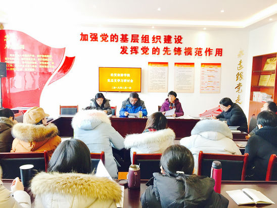 会议首先传达校党委中心组理论学习扩大会议精神,集中进行理论学习。赵红、吴俊峰、周婷三位老师分别带领大家学习了党的十九大精神(习近平新时代中国特色社会主义思想的核心要义和丰富内涵;习近平新时代中国特色社会主义思想的时代背景和历史贡献、历史性成就和历史性变革、新矛盾的重大而深远意义)、《中国共产党章程》(节选)、习近平总书记在2017年12月26日至27日召开的中共中央政治局民主生活会上的重要讲话精神。