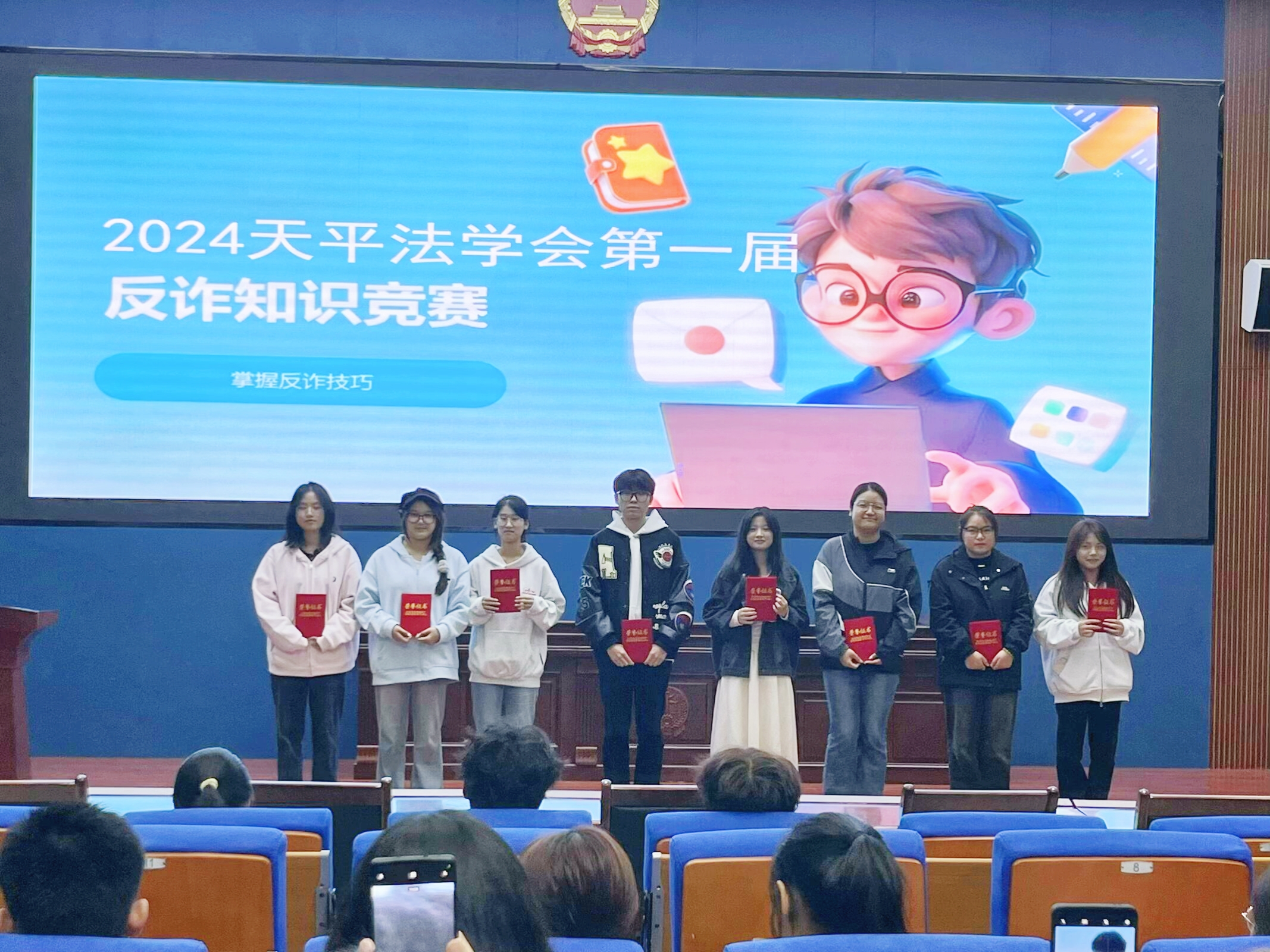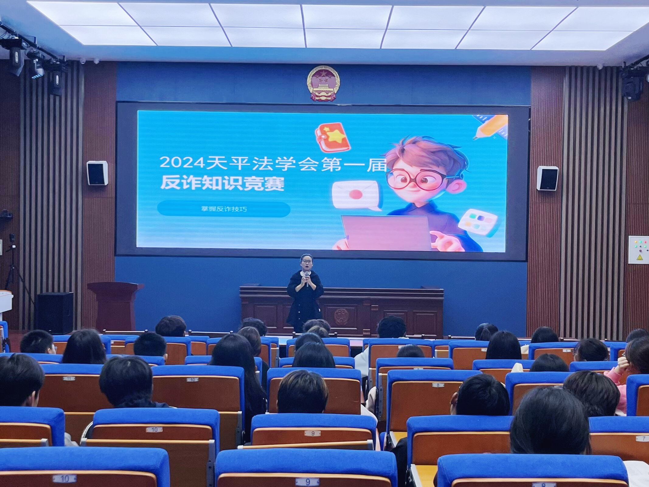 为提升大学生防范电信诈骗意识和能力,筑牢校园防范电信网络诈骗的安全防线,10月25日,天平法学会在汇心湖校区北教模拟法庭举办以 为主题的反诈系列活动启动仪式及知识竞答活动。天平法学会指导教师王福娟、会长郑昱旻及全体成员参加了本次活动,大会由郑昱旻主持。
