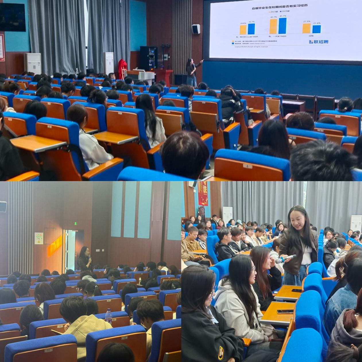 讲座由合肥启迪未来教育科技有限公司法人代表王迪主讲,她结合生活案例,引出“慢就业”话题,引导学生思考实习实践与就业岗位的关系。通过提问的方式,与学生互动,引出自我认知、兴趣、性格等话题,强调全面客观认识自己是职业生涯规划的基础。随后,她讲解了如何进行行业分析和职业调研,以及如何根据市场需求和个人优势设定职业发展目标。