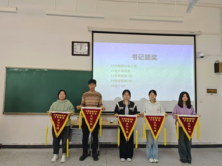 此次班级流动红旗颁奖活动,极大地激发了全院班级的竞争意识和集体荣誉感,相信在这份激励下,各班级都将以更加饱满的热情投入到校园生活中,为打造更加优秀的校园环境和浓厚的学习氛围贡献自己的力量。(供稿:经贸旅游学院 王明明 初审:赵倩倩 审核:杨璨)