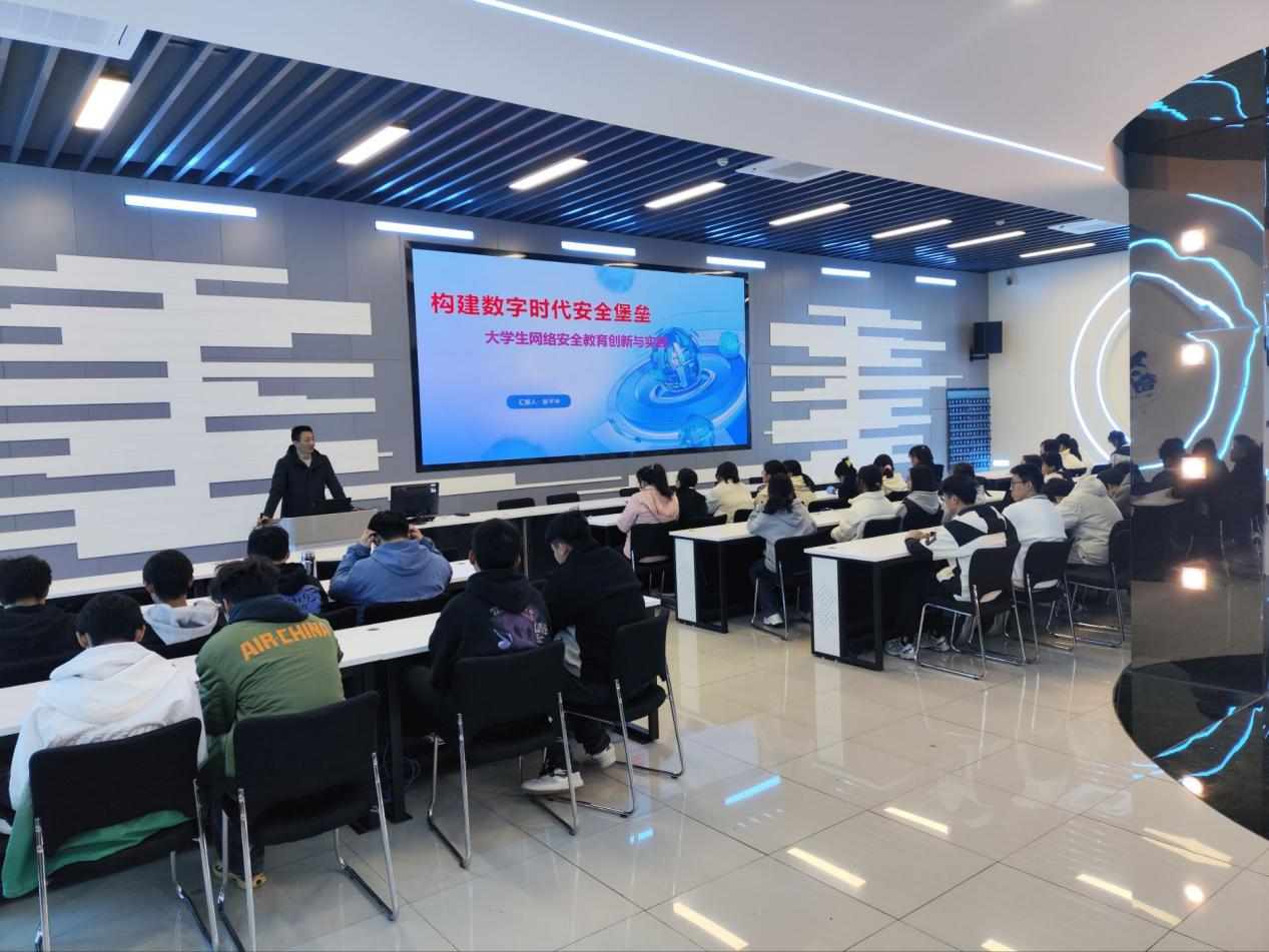 在数字化时代的背景下,网络安全与国防教育的重要性日益凸显,成为国家发展不可或缺的保障。网络安全不仅是数字时代的“生命线”,更是维护国家稳定、社会安宁和人民福祉的关键基石。为了提升AC米兰官网师生的网络安全意识,强化大学生网络安全教育,11月20日下午,信息工程与传媒学院张平华教授在轨道楼四楼为全校师生做了一场主题为《构建数字时代安全堡垒——大学生网络安全教育创新与实践》的学术讲座。