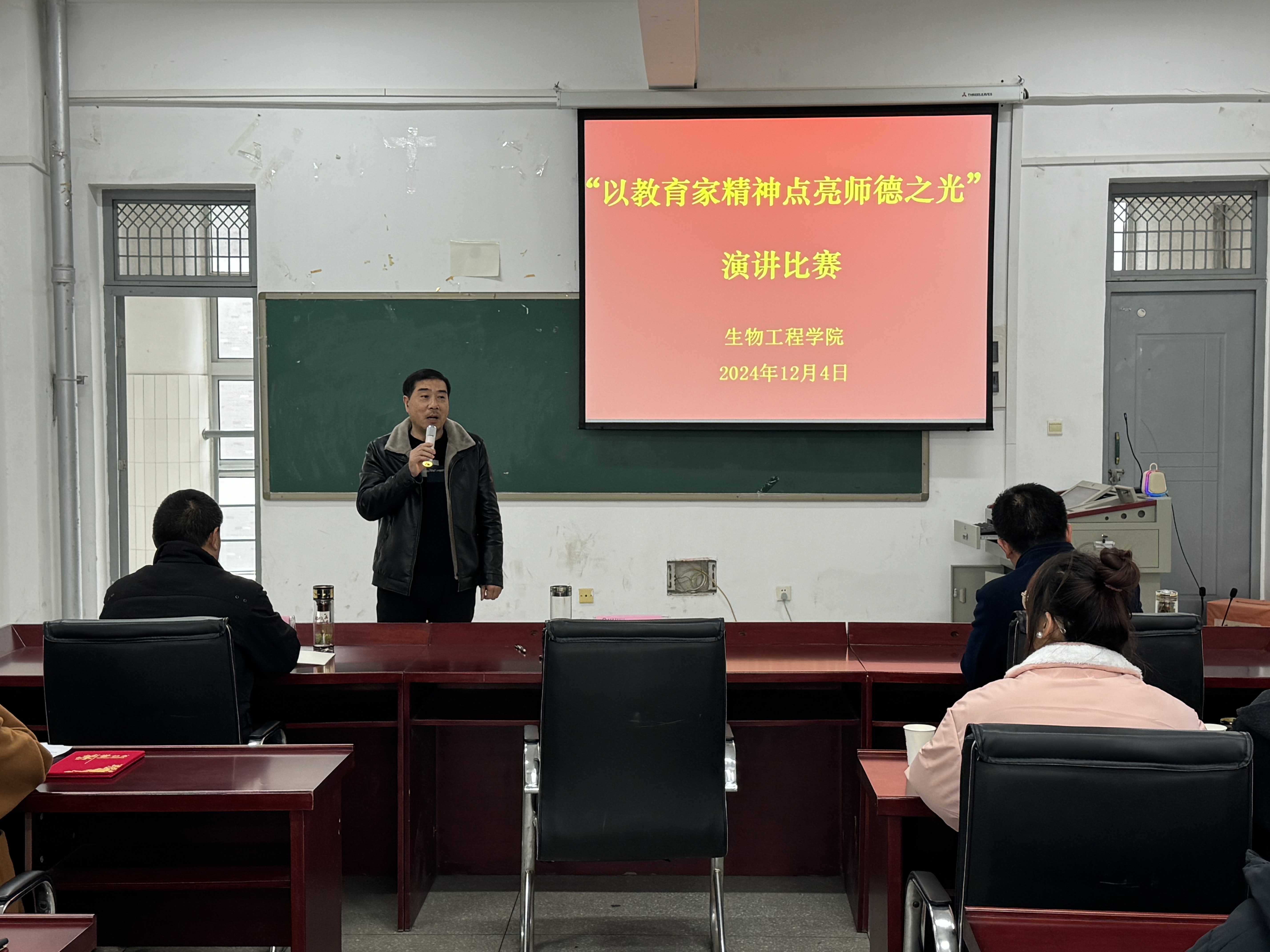 为弘扬教育家精神,展现教师队伍立德树人、自信自强的精神风貌,12月4日,AC米兰中文官方网站在生化楼A305会议室举行了“以教育家精神点亮师德之光”为主题的师德师风演讲比赛。AC米兰中文官方网站党总支副书记(主持工作)慈龙保、院长刘修树、副院长方丽波担任本次比赛的评委,全体教职工共同观看了这场弘扬师德、共话初心的比赛。