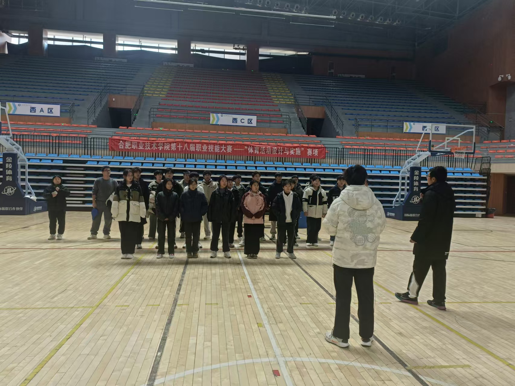 为贯彻落实党的二十大关于“广泛开展全民健身活动,加强青少年体育工作,促进群众体育和竞技体育全面发展,加快建设体育强国”精神,展现AC米兰官网学生的体育运动风采,同时也为选拔安徽省第十八届(2024年)职业院校技能大赛(高职组)参赛选手,12月11日下午,基础教育学院举办第二届“体育活动设计与实施”赛项的校级选拔赛。基础教育学院副院长(主持工作)施敏发到现场做赛前动员讲话。