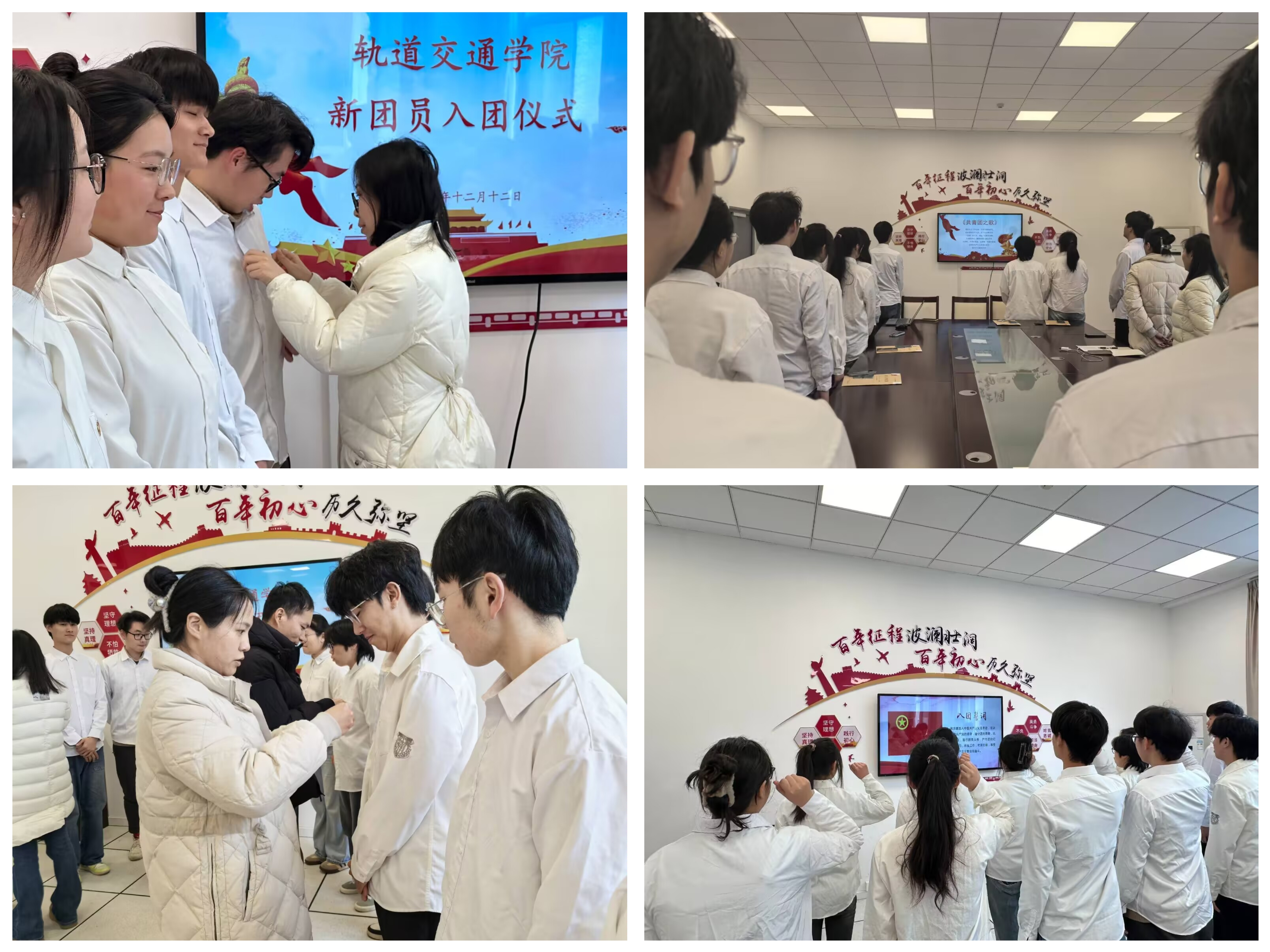 青年兴则国家兴,青年强则国家强。为深入贯彻党的教育方针,扎实推进共青团队伍建设,激发团组织活力,12月12日,轨道交通学院团总支在轨道楼207会议室举行新发展团员入团仪式,轨道交通学院党总支副书记梁雯婷、学管办主任赵喜、专职组织员孙月、团总支书记吴明丽出席仪式,全体新团员参加本次活动。