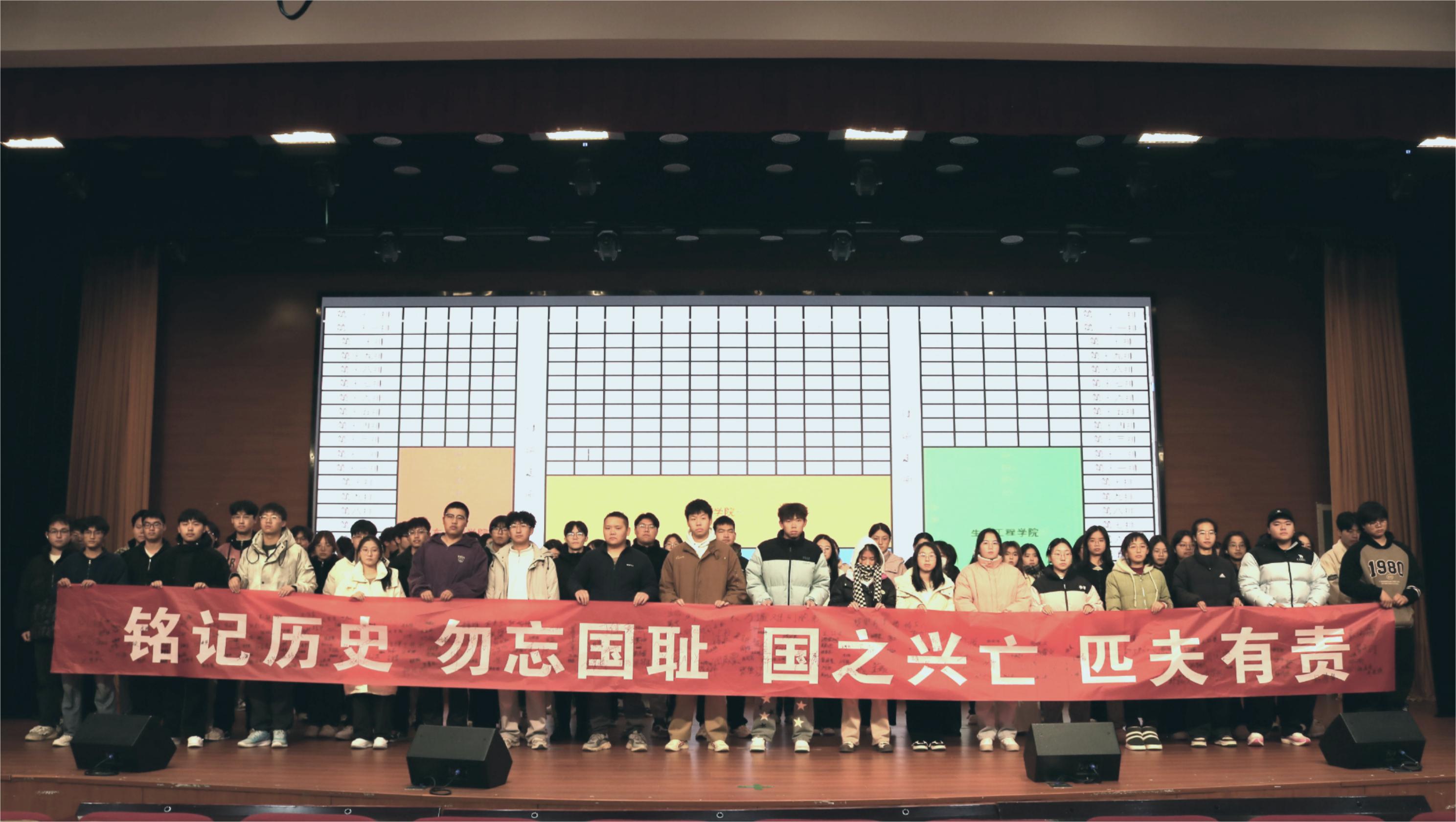 活动在鼓山校区大学生活动中心二楼报告厅举行。入场处,一条醒目的横幅——“铭记历史 勿忘国耻,国家兴亡 匹夫有责”赫然在目,提醒着每一位到场的同学铭记历史的重要性。学生们纷纷在横幅上郑重签字,一笔一划流露出对历史的尊重和对国家的深情厚谊。