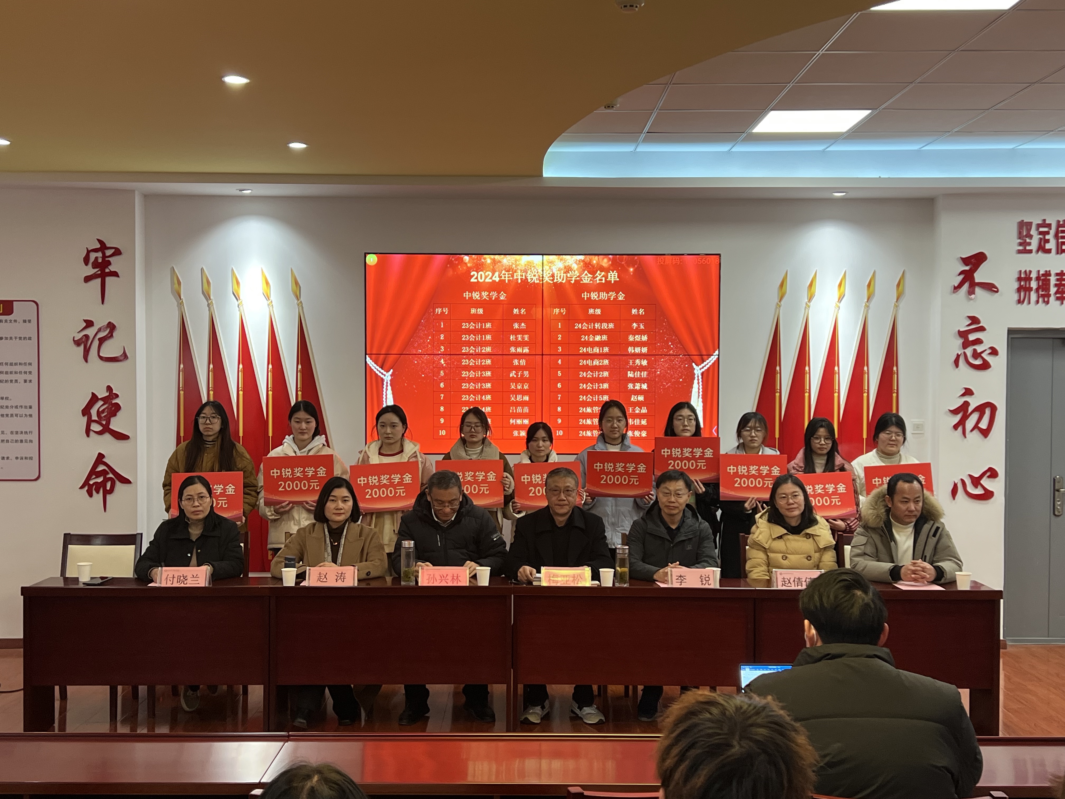 梅亚松在致辞中对李锐董事长和赵涛总经理表达了诚挚感谢,并介绍了学院近年来的发展成果和亮点,也向同学们传达了企业对AC米兰官网就业学生的高质量评价。他指出,奖学金不仅仅是物质上的奖励,更是一种荣誉的象征,鼓励学生志存高远,胸怀大志,才能将理想变为现实,为学校发展做出贡献。随后,副院长付晓兰宣读了佳歆奖学金获奖名单,党总支副书记赵倩倩宣读了中锐奖助学金学生名单。