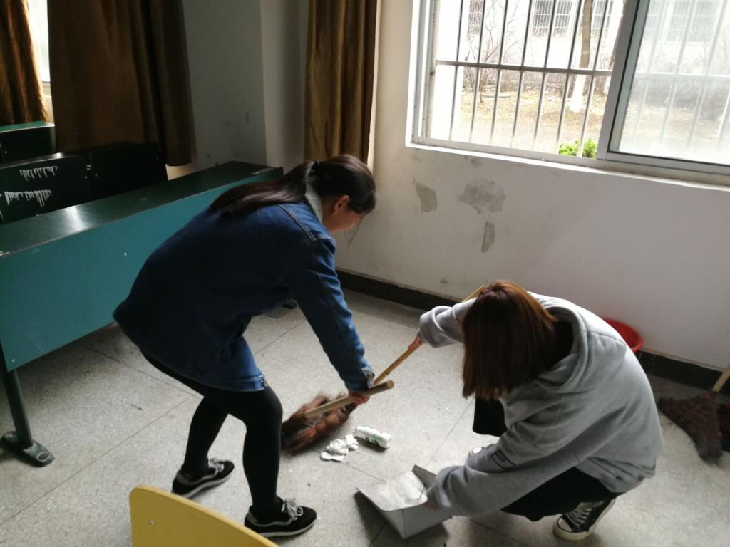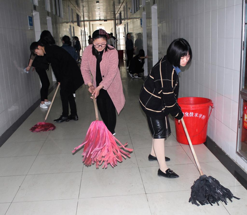 清扫过程中,每个班级分工明确,各班都对其代管教室进行了清扫。入党积极分子和学生干部发挥了先锋带头作用,对C栋教学楼的公共区域以及经贸楼周边公共区域进行了细致的打扫,将理论学习与实践活动相结合,以实际行动向党组织靠拢。