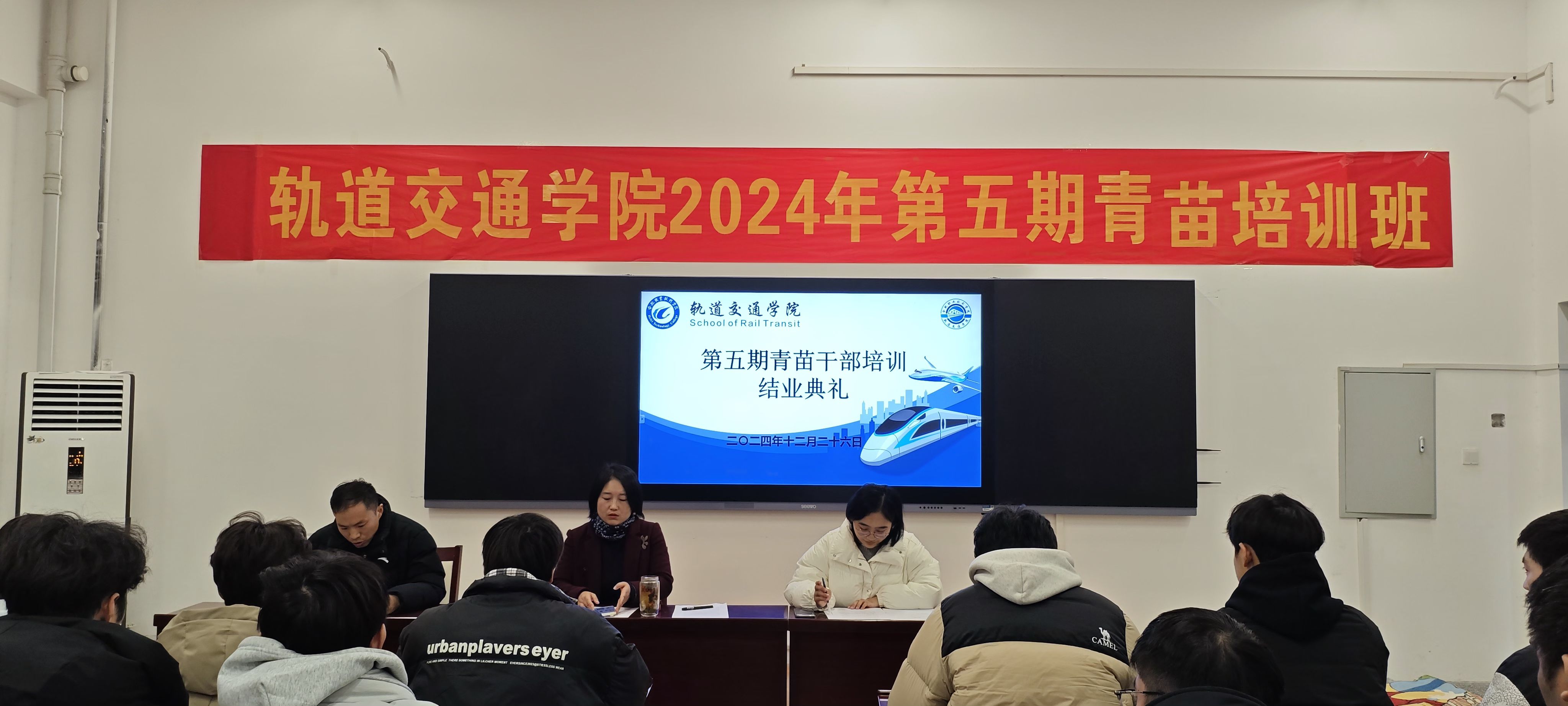 为深入学习贯彻习近平新时代中国特色社会主义思想和党的二十届三中全会精神,着力培养青年学生骨干成为有理想、敢担当、能吃苦、肯奋斗的新时代好青年,12月26日,轨道交通学院团总支在轨道楼309举行2024年第五期青苗学生干部培训班结业仪式。
